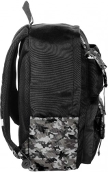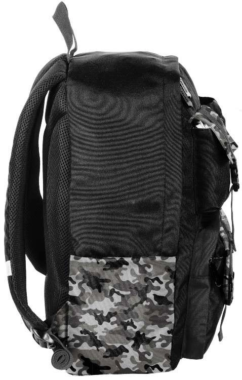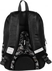 Il leggero zaino scolastico BeUniq Moro del marchio Paso, in nero con motivo mimetico, offre un ampio scomparto principale, spallacci ergonomici e confortevoli e schienale rigido e traspirante. Grazie agli elementi riflettenti è sicuro sul percorso verso la scuola; le tasche laterali per la bottiglia e le tasche frontali con cerniera garantiscono un’organizzazione perfetta. Realizzato in poliestere resistente e impermeabile ed adatto al formato A4.