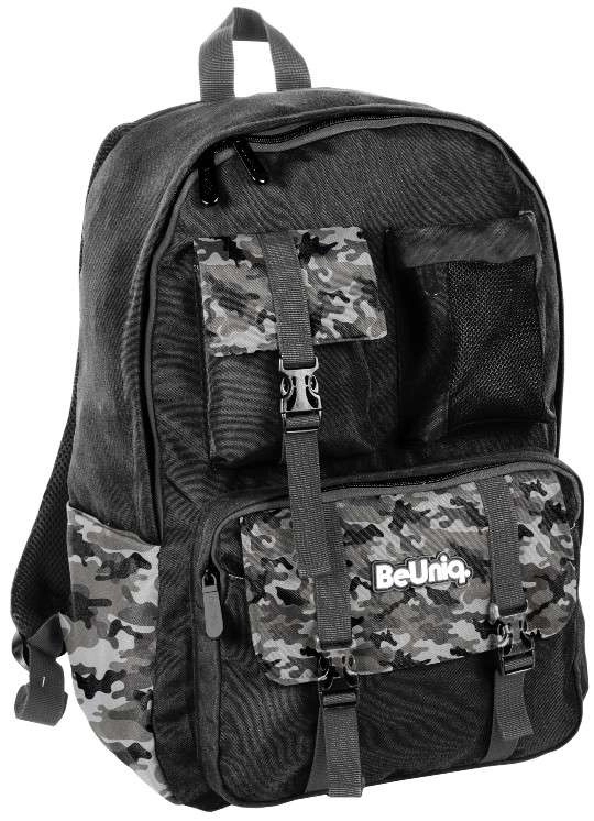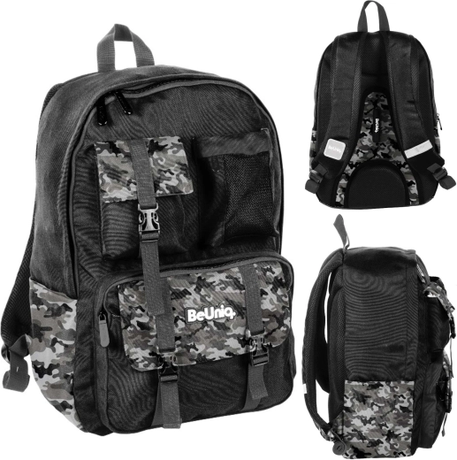 Cerchi uno zaino scolastico affidabile per l’uso quotidiano? BeUniq Moro combina design mimetico moderno e funzionalità: un grande scomparto per libri e quaderni in formato A4, tre tasche frontali con cerniera per gli oggetti piccoli e due tasche laterali in tessuto per la bottiglia. Schienale rinforzato, anatomicamente sagomato, con rete traspirante e spallacci comodi regolabili garantiscono comfort anche a pieno carico.