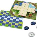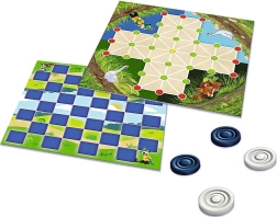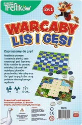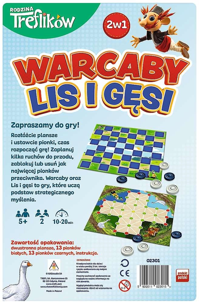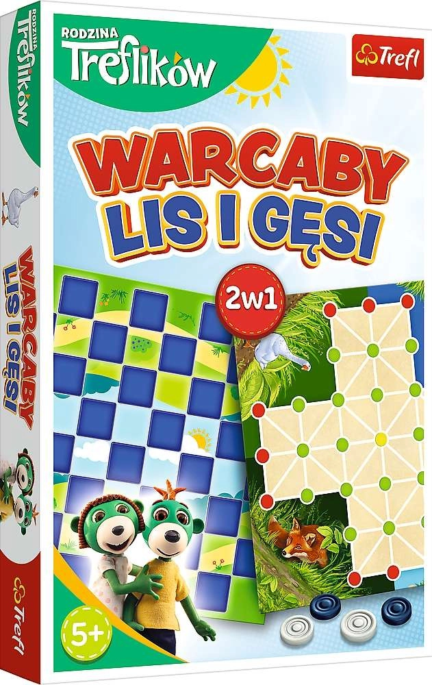 Il set 2 in 1 porta in gioco due classici in una versione adatta ai bambini: la dama e l’avvincente volpe e oche. Basta aprire la plancia di gioco bifacciale, sistemare le pedine e iniziare a pensare alle mosse in anticipo. Le allegre illustrazioni con i personaggi della serie FAMIGLIA TREFÍK conquistano sia i più piccoli sia i più grandi.