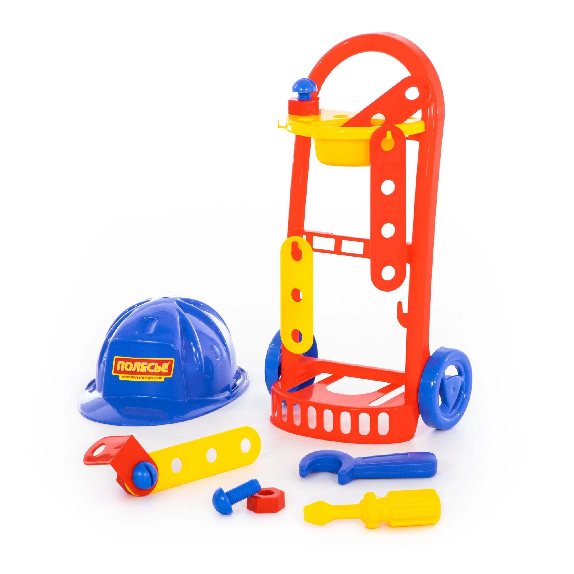 Il contenuto del set può includere ad es. chiave, cacciavite, martelletto, viti e dadi – tutto per un gioco divertente ed educativo a casa.
