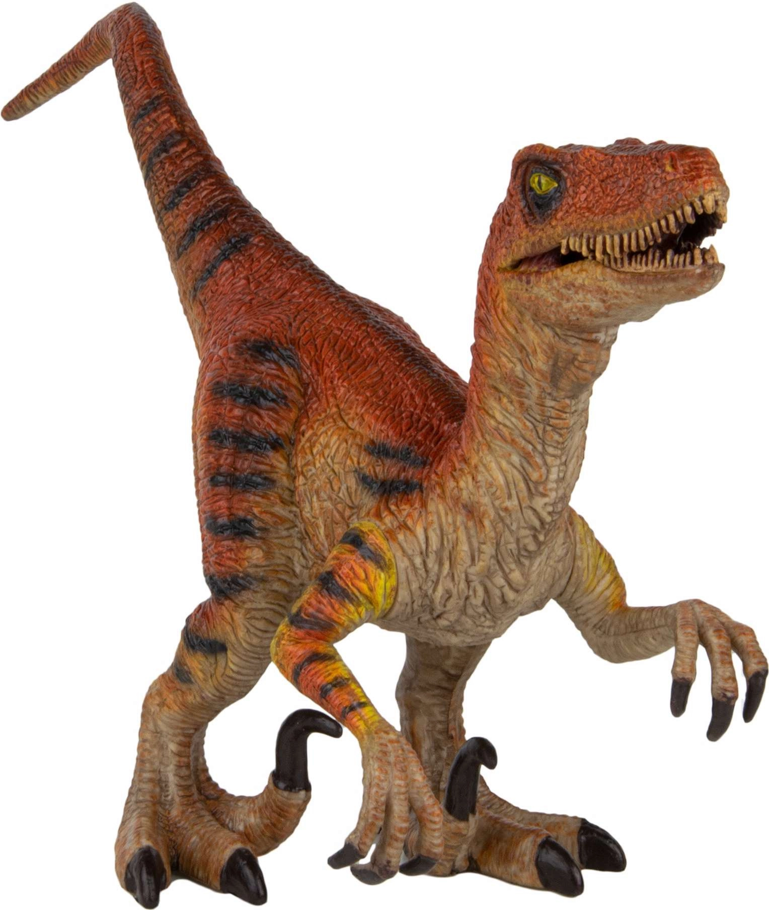 Questa figurina realistica di Velociraptor conquisterà piccoli e grandi appassionati di preistoria. La texture superficiale precisa, la colorazione arancione‑marrone con strisce nere e i dettagli marcati di denti e artigli risultano straordinariamente credibili. La mascella snodata e le zampe anteriori mobili aggiungono interattività e stimolano la fantasia dei bambini.