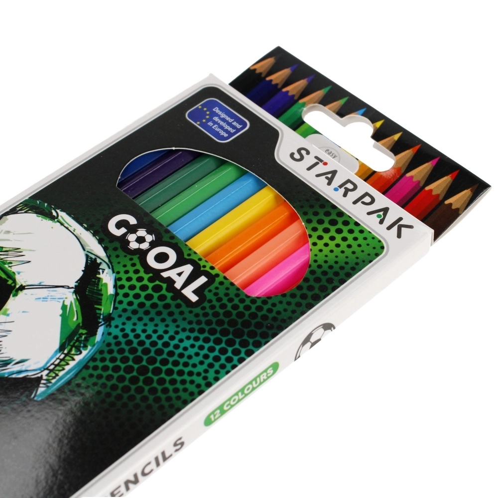 Scopri la gioia del disegno con il set di 12 pastelli colorati a tema calcio. Grazie al profilo esagonale, i pastelli si impugnano comodamente, rotolano meno dal tavolo e permettono un lavoro preciso e delicate sfumature. Le mine pre-temperate e i pigmenti intensi assicurano una copertura bella e uniforme.