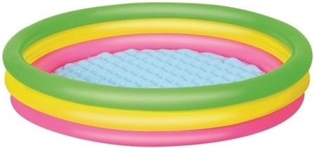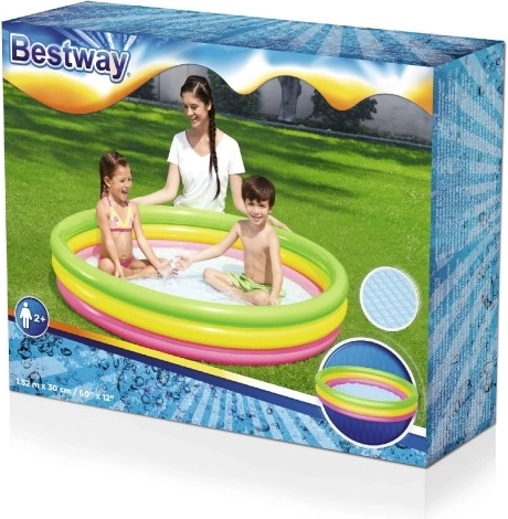 Regalate ai bambini freschezza e divertimento in sicurezza con la colorata piscina gonfiabile BESTWAY dal diametro di 152 cm. Ha fondo gonfiabile morbido, 3 anelli colorati e 3 valvole di sicurezza per la stabilità. Realizzata in vinile resistente, capacità 211 l, dimensioni 152 × 30 cm, ideale per bambini dai 2 anni per il giardino e anche per la cameretta.