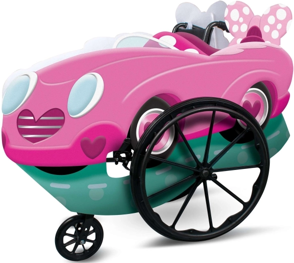 Delizioso costume a tema veicolo di MINNIE per sedia a rotelle per bambini che trasforma ogni giro in un divertimento magico. Prodotto originale con licenza DISNEY del marchio Disguise, realizzato in morbido feltro, facile da applicare e adatto a sedie con ruote da 24" (61 cm). Ideale per carnevale, feste in maschera e gioco in casa.