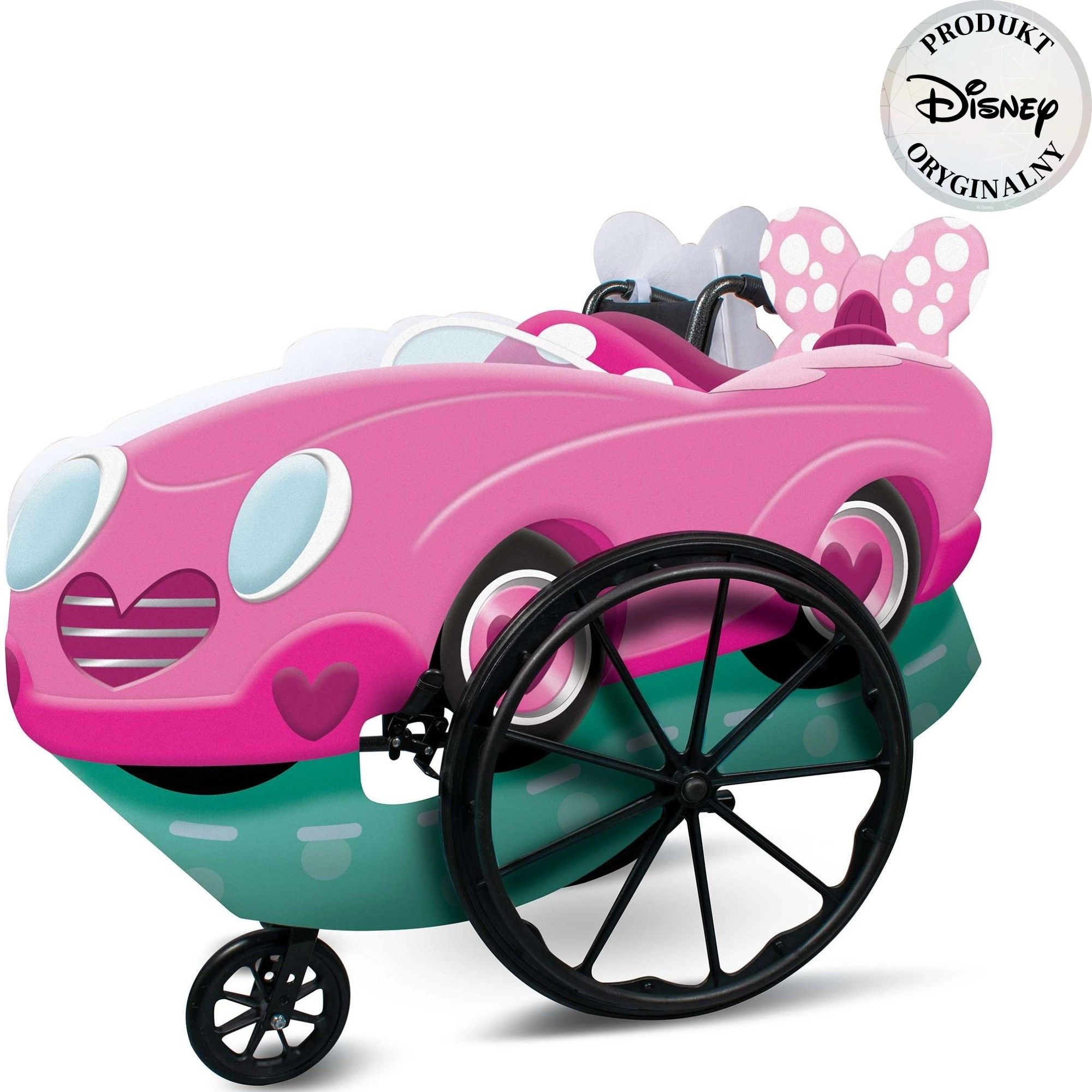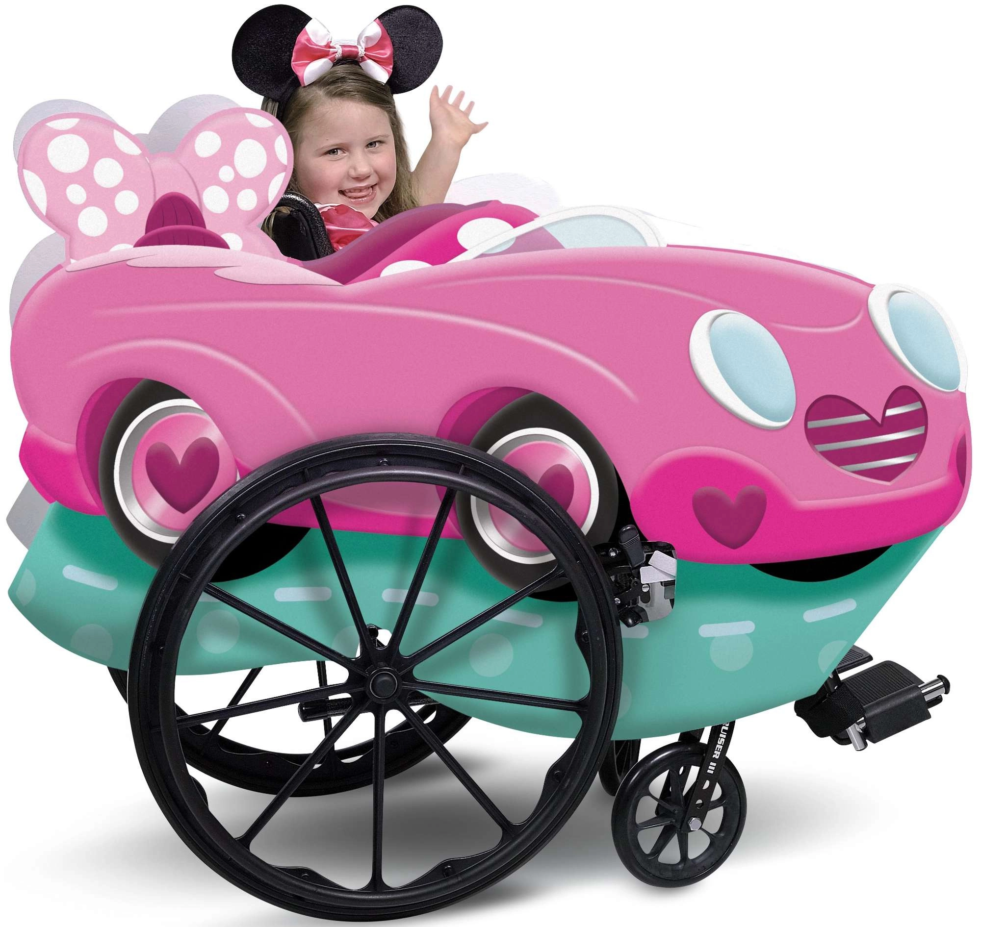 Questo incantevole costume raffigura il coloratissimo veicolo di Minnie ed è progettato specificamente per sedie a rotelle per bambini senza trazione elettrica. Grazie alla struttura leggera in feltro è confortevole, sicuro e delicato sulle superfici, perfetto per giocare sia in casa che all’aperto.
