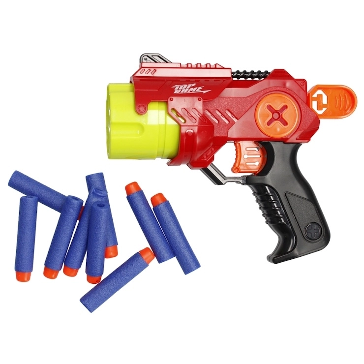 Pistola giocattolo leggera e facile da usare con dardi morbidi e atossici in gommapiuma per un divertimento sicuro. Basta inserire le frecce nel caricatore e, premendo il grilletto, spareranno. Inclusi 9 dardi in gommapiuma, due varianti di colore (rosso e blu) e dimensioni compatte ideali per mani piccole. Adatta per bambini da 8 anni.