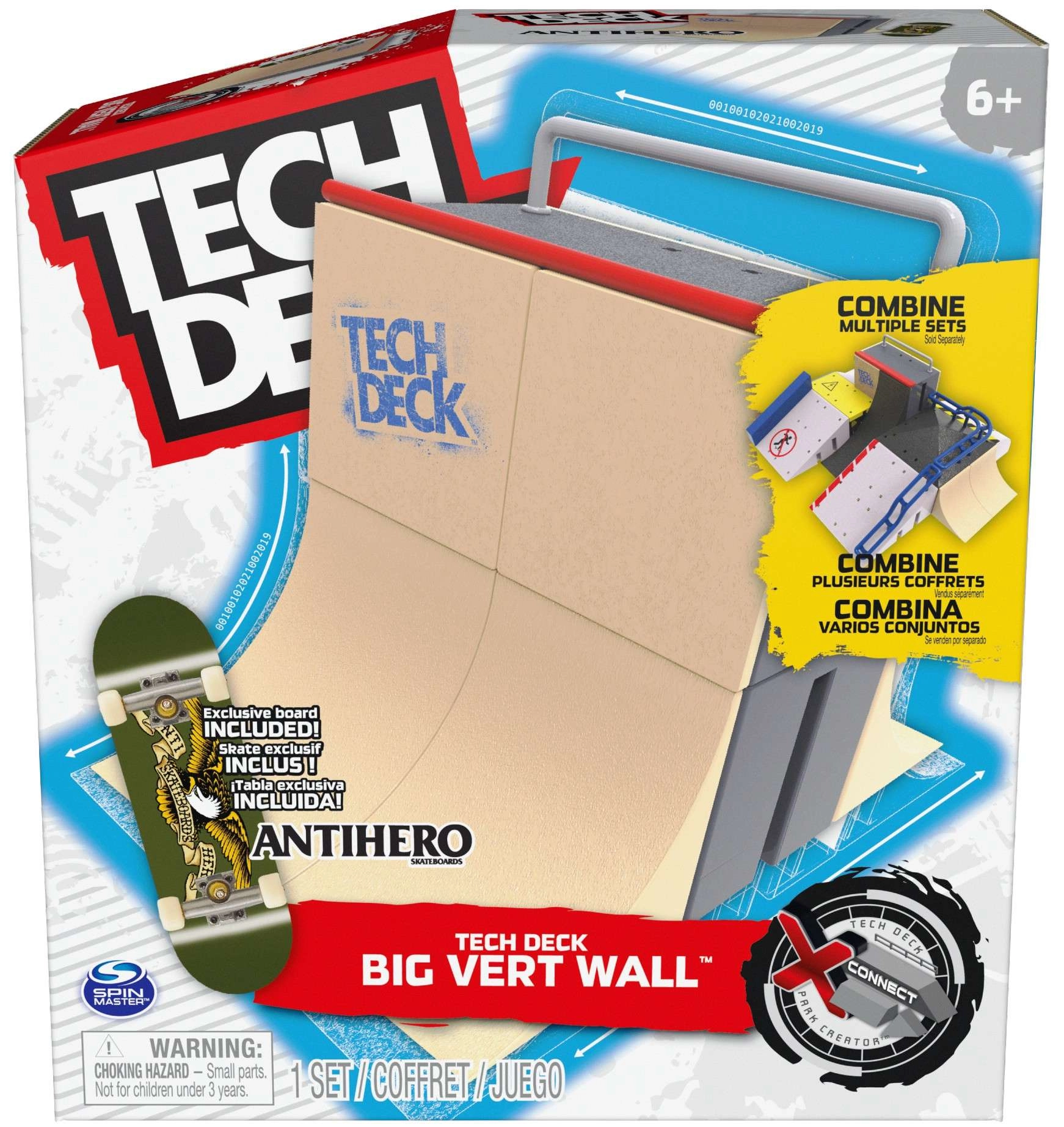 Vivi trick realistici da fingerboard con la rampa Big Vert Wall della serie X-Connect e l'originale fingerboard TECH DECK Antihero. Il sistema di rampe collegabili consente di creare il tuo skatepark personalizzato, allenare grind, salti e flip trick e migliorare continuamente le tue abilità. Ideale per principianti e appassionati avanzati di fingerboarding.