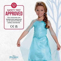 Incantevole costume per bambini ELSA dal film DISNEY FROZEN per altezza 124–135 cm (7–8 anni), perfetto per tutte le piccole principesse. L'abito nei toni azzurro chiaro e argento è leggero, lucente e confortevole, ideale per carnevale, feste in maschera e giochi in casa. Prodotto ufficialmente licenziato Disney.