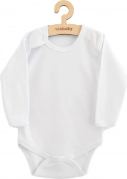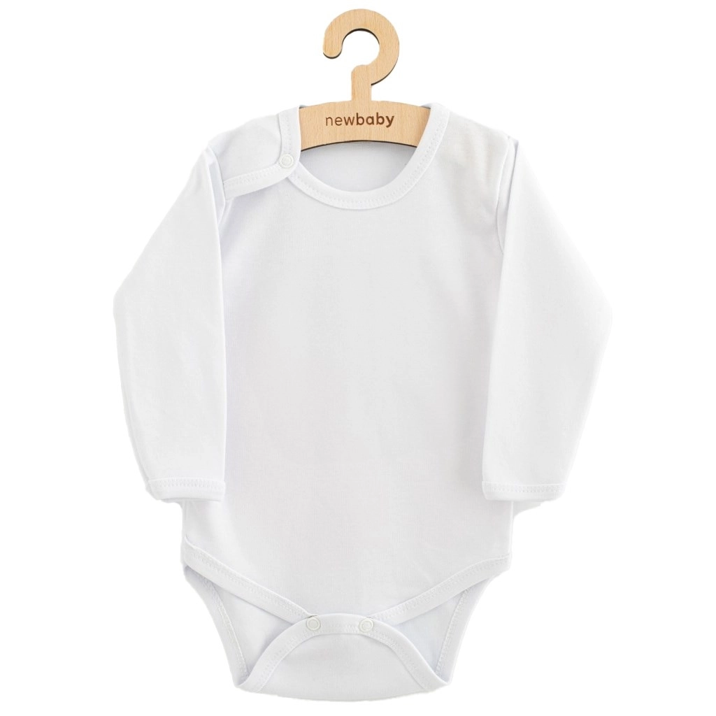 Comodo body per neonato a manica lunga del marchio New Baby in colore bianco. Offre morbido materiale 100% cotone, pratica chiusura a bottoncini a pressione sulla spalla e tra le gambine e cambio e vestizione facili per tutto il giorno.