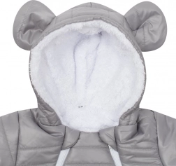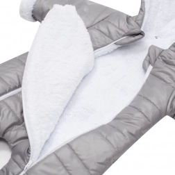 Dettagli pratici come il cappuccio con dolci orecchiette, i polsini risvoltabili con bordo caldo e i piedini coperti mantengono il bimbo al caldo dalla testa ai piedi. La tutina è una scelta ideale per passeggino, marsupio e passeggiate invernali.