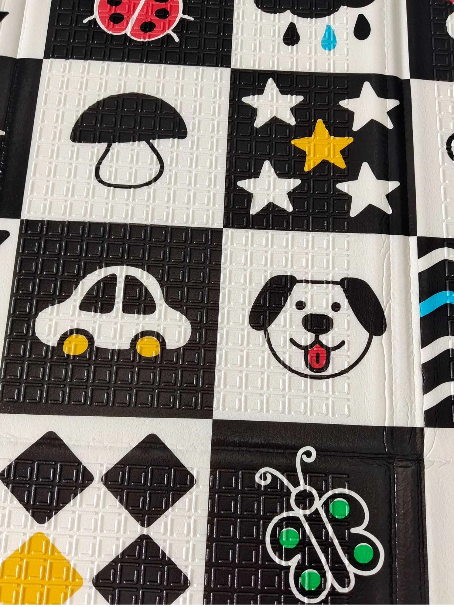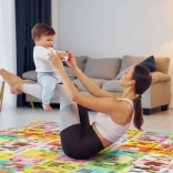 Il materiale XPE è inodore, impermeabile e facile da lavare: lo sporco si rimuove con un panno umido. Il tappetino è pieghevole, leggero e salvaspazio, quindi facile da trasportare e riporre. Grazie alla texture antiscivolo assicura stabilità durante il gioco e gli esercizi con i genitori.