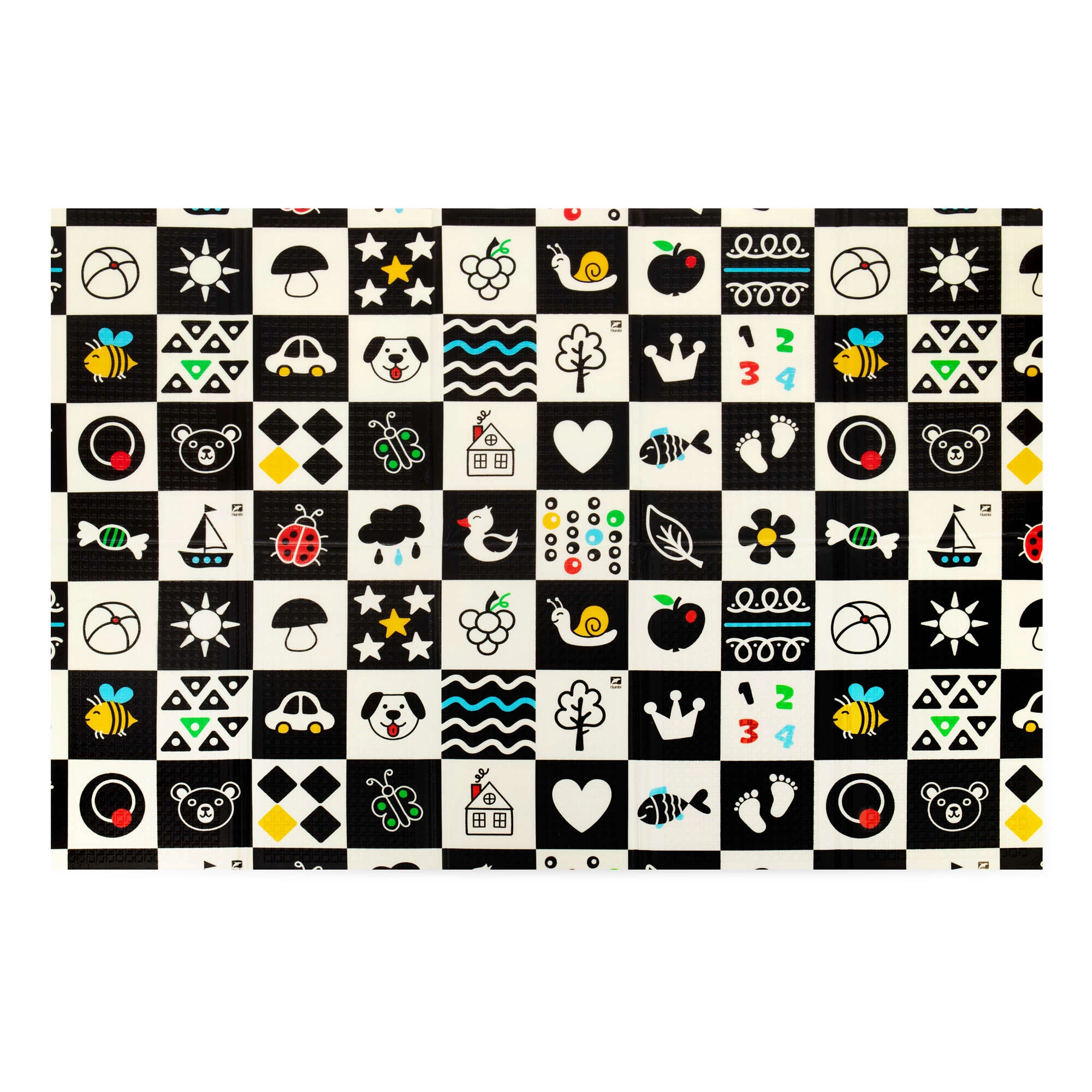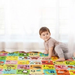 - Design 2-in-1: lato colorato con alfabeto e animaletti + lato bianco e nero a contrasto con icone.