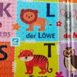 Il lato colorato con alfabeto tedesco e simpatici animaletti favorisce il primo approccio alle lettere, mentre il lato a contrasto bianco e nero stimola la vista e la concentrazione.
