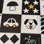 - Double-face: alfabeto colorato (DE) / motivi a contrasto bianco e nero