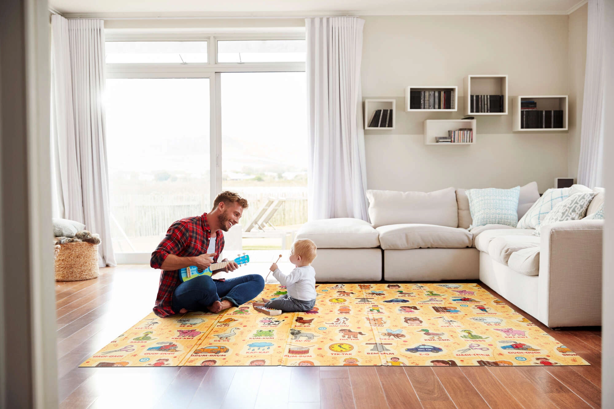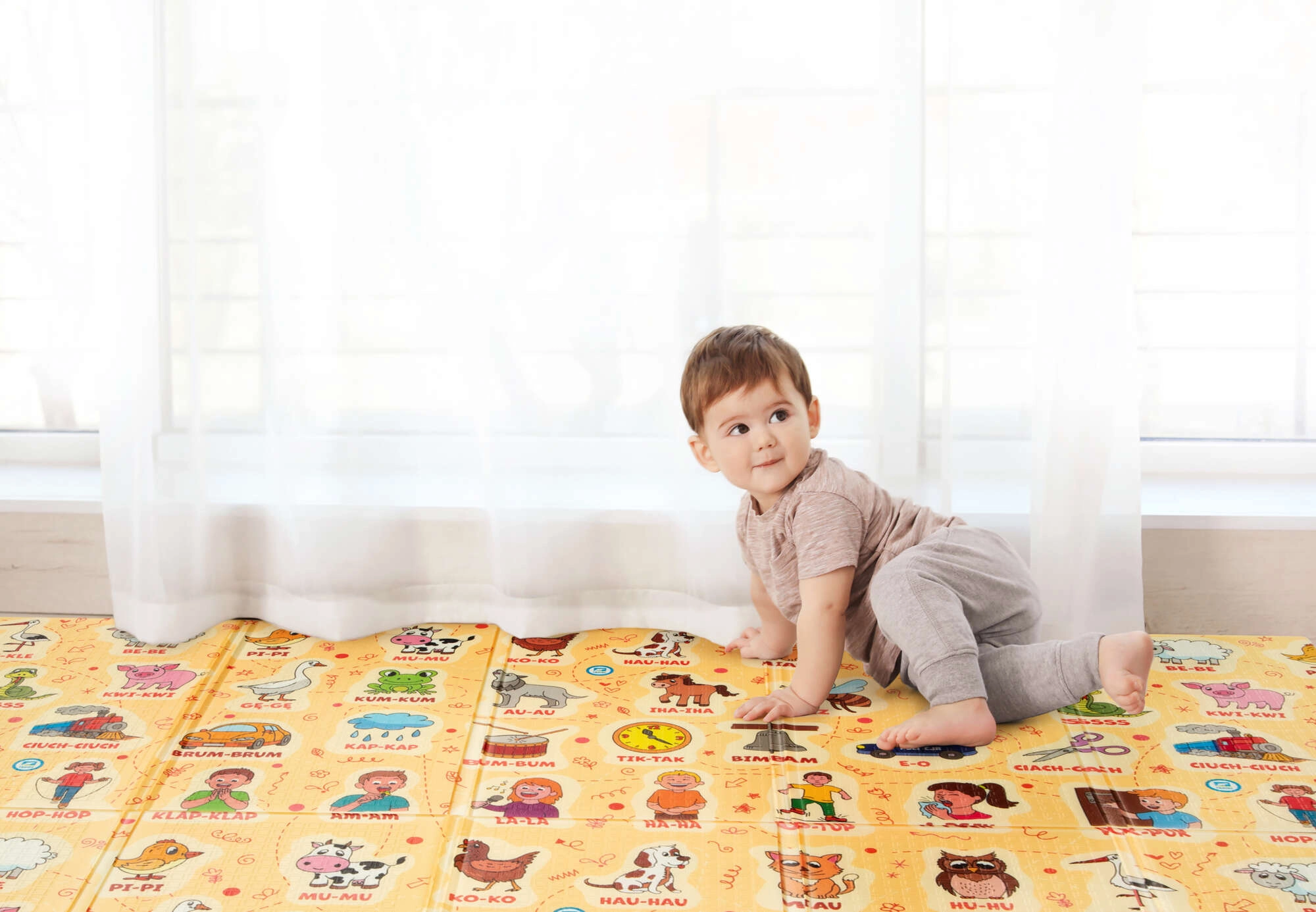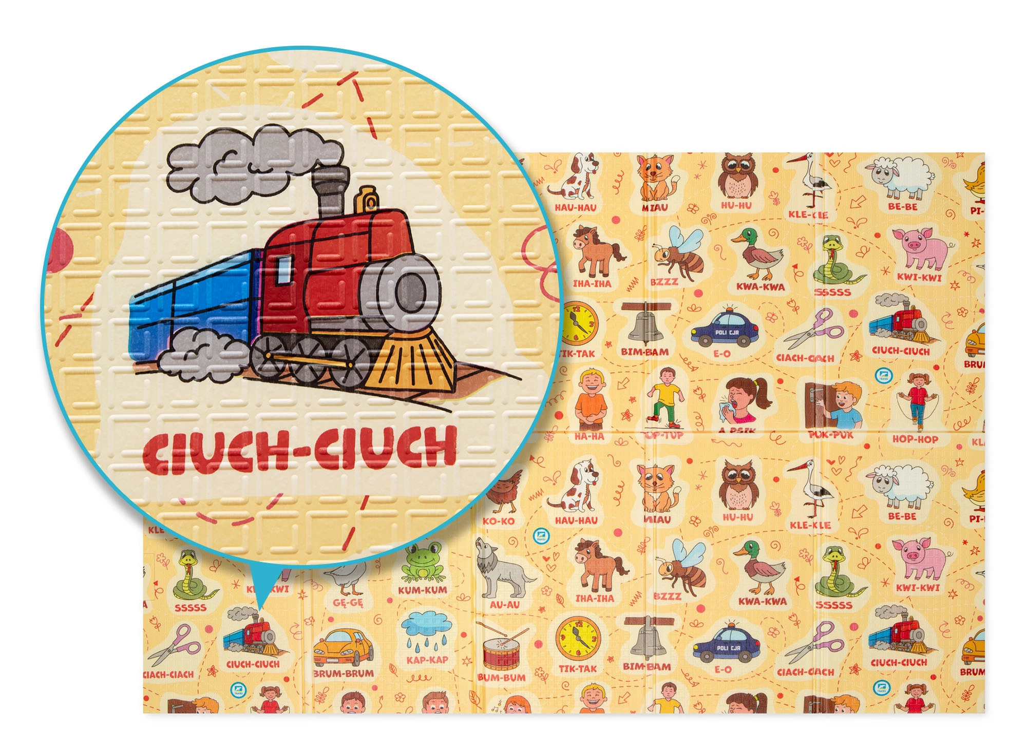 Scopri uno spazio di gioco senza compromessi. Il tappetino HUMBI in schiuma XPE è spesso, elastico e resistente, assorbe ottimamente gli impatti e isola dal pavimento freddo. Grazie al design bifacciale offre motivi a contrasto per i più piccoli e un lato giocoso con onomatopee e alfabeto per stimolare il linguaggio e riconoscere i versi degli animali.