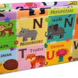 Pattern a contrasto per i più piccoli e un lato giocoso con onomatopee e alfabeto che favoriscono la percezione, lo sviluppo del linguaggio e l’apprendimento dei versi degli animali tramite il gioco.