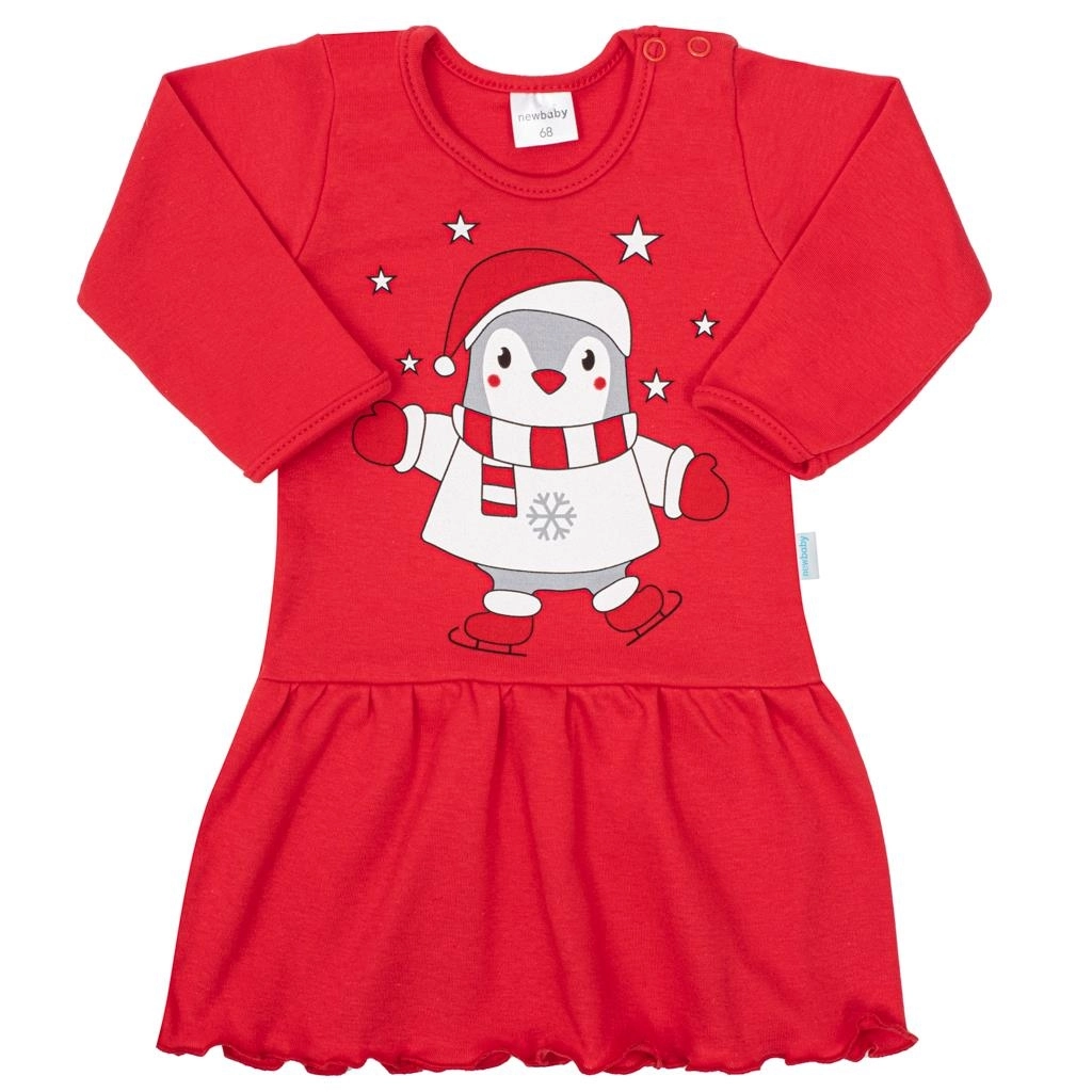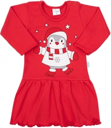 Il delizioso vestitino per bambina con fascia NEW BABY Winter Penguin farà felice ogni piccola principessa. È realizzato in 100% cotone confortevole, ha maniche lunghe, una pratica chiusura a automatico sulla spalla ed è decorato con un allegro motivo pinguino in un bellissimo colore rosso. È inclusa una fascia elastica che si adatta perfettamente alla testolina.