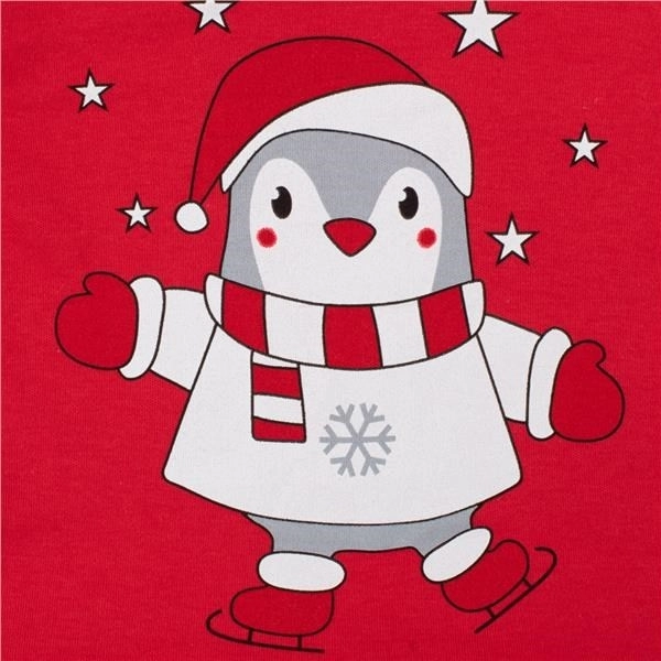 La pratica chiusura a automatico sulla spalla facilita la vestizione, mentre la fascia elastica è in coordinato con il vestitino e completa splendidamente l’outfit. Il tenero motivo invernale con pinguino e il vivace colore rosso donano un aspetto giocoso all’abbigliamento.