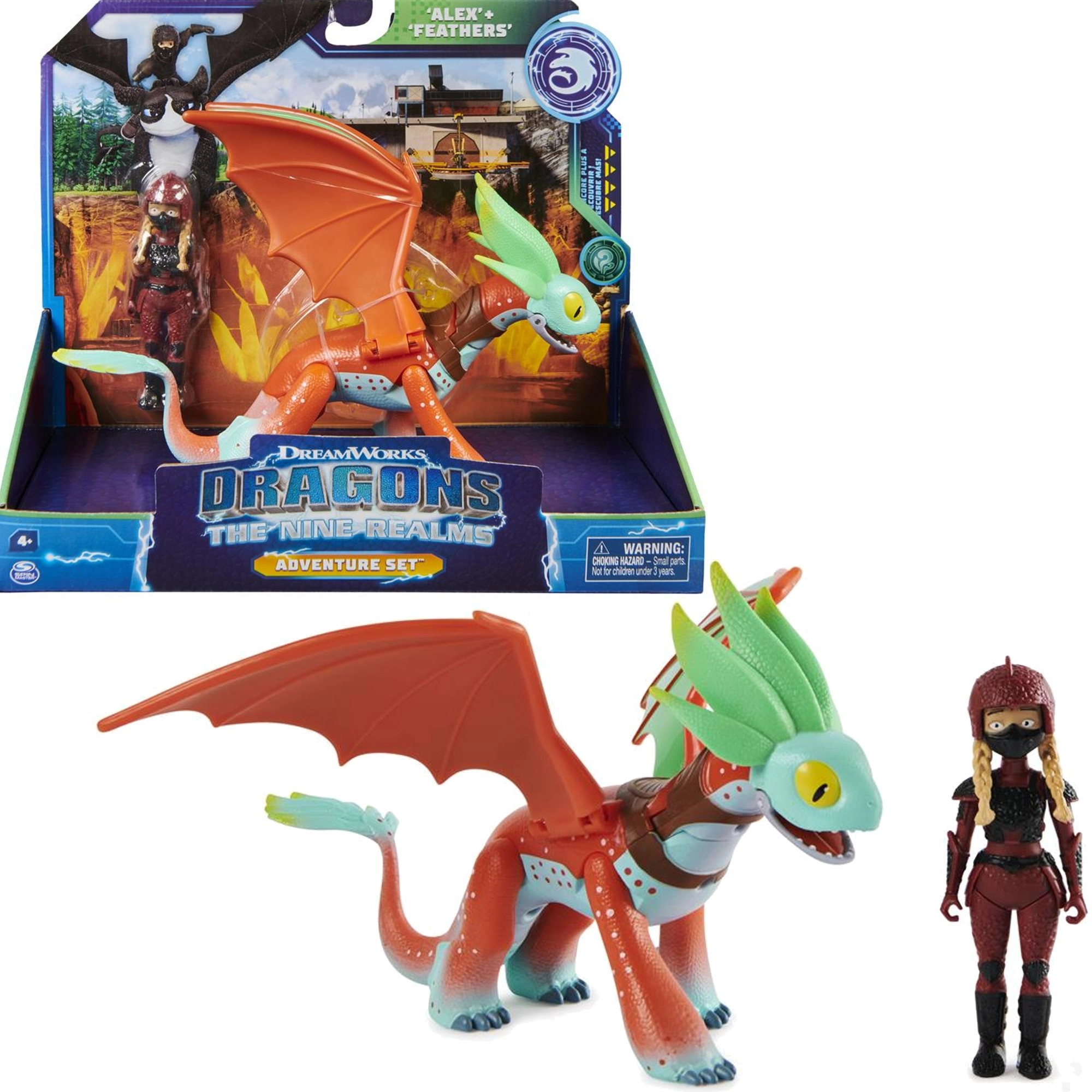 - Set completo: figura Alex (~10 cm) + drago Piuma (~21 cm di lunghezza).
