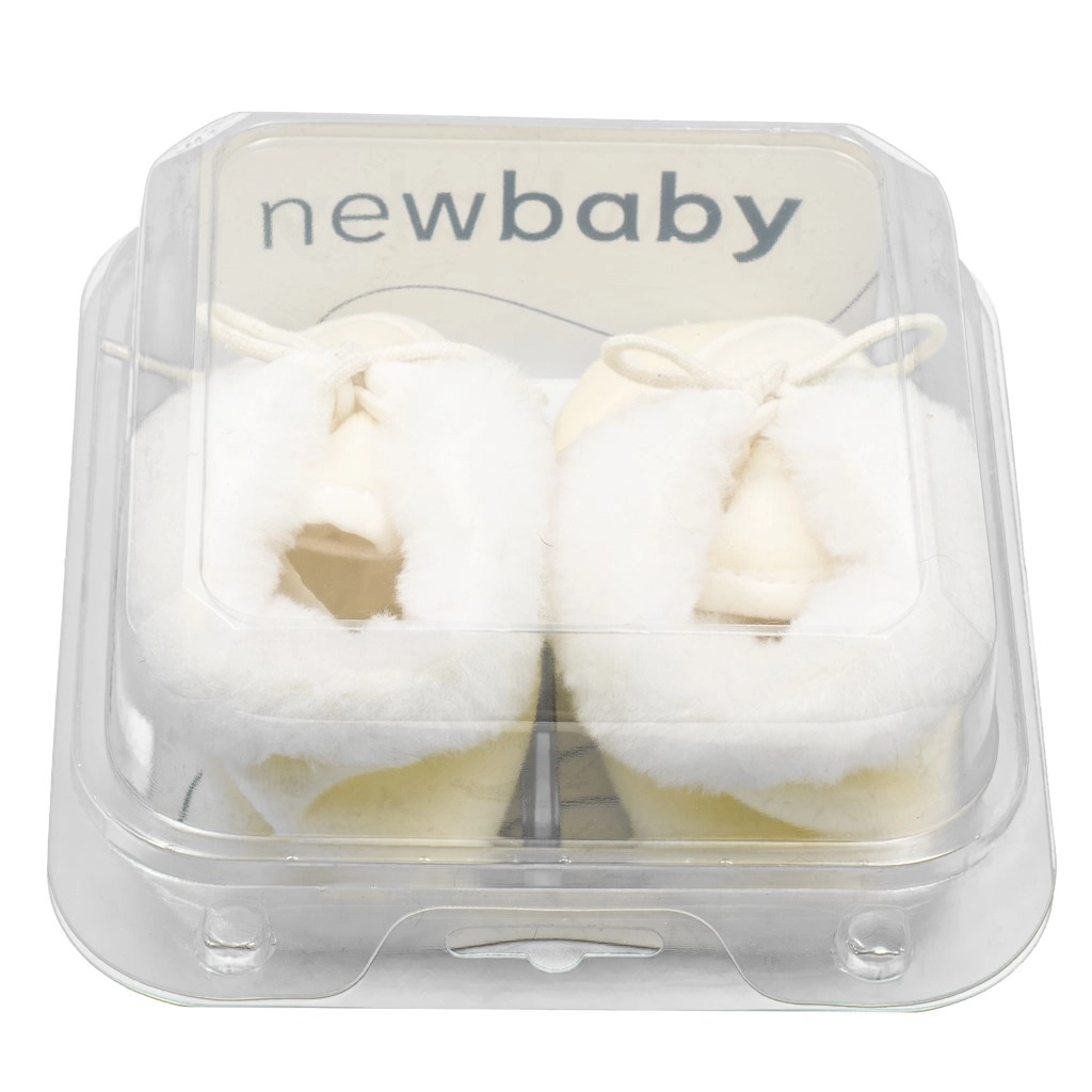 Morbide scarpine per neonati New Baby di colore beige mantengono i piedini del tuo bimbo piacevolmente al caldo. Hanno una calda fodera in pile, allacciatura per una regolazione facile e una suola leggera e flessibile adatta al periodo prima dei primi passi. Grazie allo spazio interno più ampio, le dita hanno sufficiente libertà per un movimento naturale.