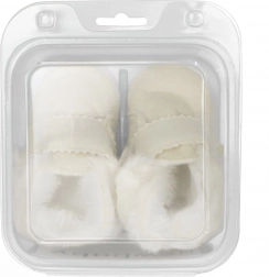 Le scarpine sono molto leggere, con suola sintetica sottile in PVC senza BPA – ideali per passeggino, viaggi e relax. La lunghezza interna della soletta è di 10 cm, consigliate per età 0–3 mesi. Fornite in una pratica confezione regalo, perfette anche come dono per neonato.