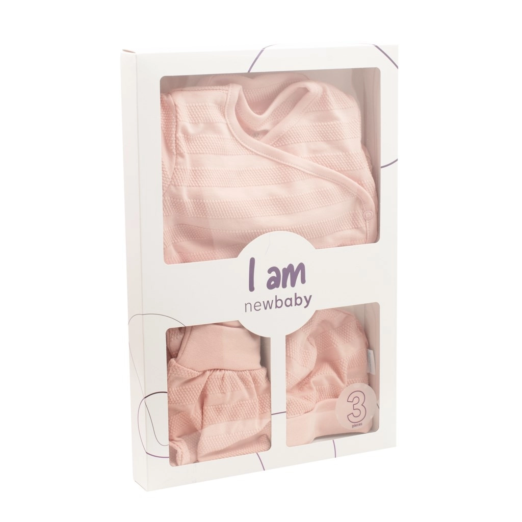 Questo set neonato NEW BABY I AM da 3 pezzi è progettato pensando alla pelle sensibile dei più piccoli. Cotone morbido, tagli confortevoli e dettagli studiati facilitano la vestizione quotidiana e il cambio. Il rosa neutro con texture delicata risulta dolce e pulito.