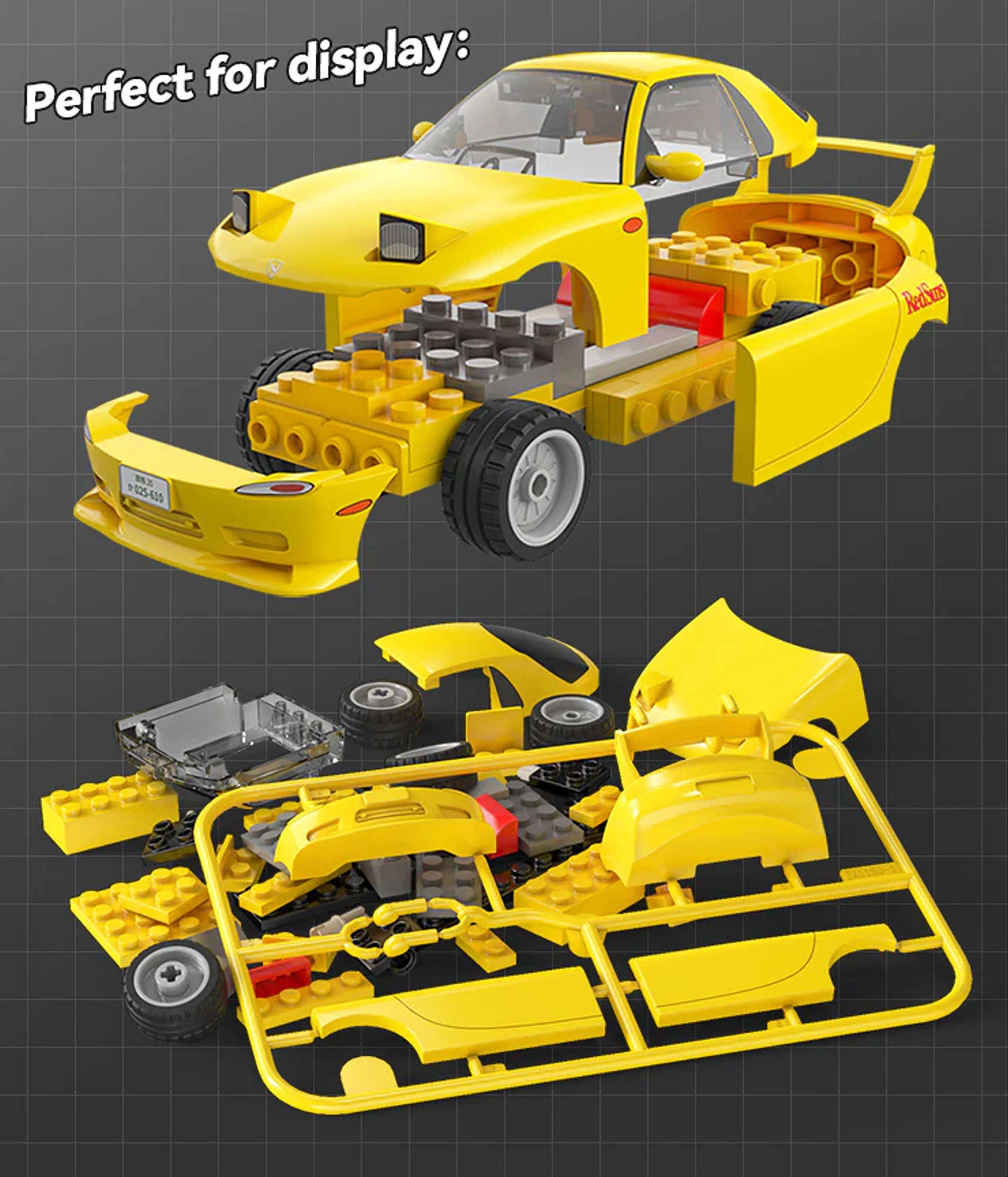 Goditi la costruzione dell’auto leggendaria della serie Initial D – il modello MAZDA RX-7 FD3S nell’elegante colorazione gialla. Con 66 pezzi, il modello è ideale per costruttori meno esperti e bambini dagli 8 anni in su. Non mancano ruote in gomma per un facile movimento su varie superfici e dettagli curati che faranno felici i fan della serie cult e i collezionisti.
