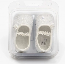 La suola è in materiale sintetico PVC sottile, privo di BPA, perciò le scarpine sono molto leggere e adatte all’uso in interni o nel passeggino. Il prodotto non è destinato alla deambulazione, ma mantiene al caldo e protegge i piedini del bebè. Fornite in una pratica scatolina, perfette anche come regalo.