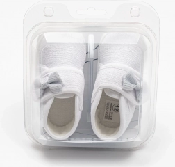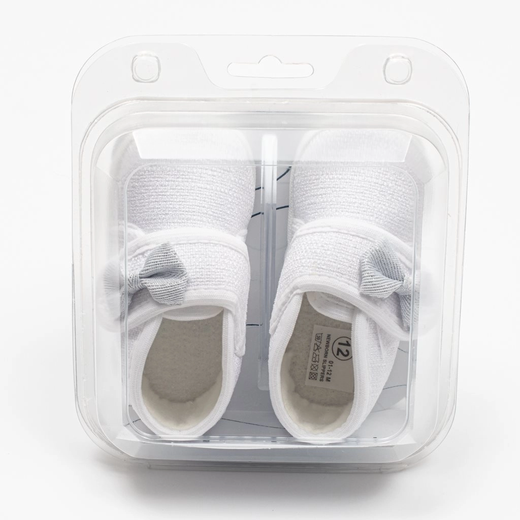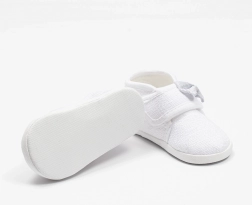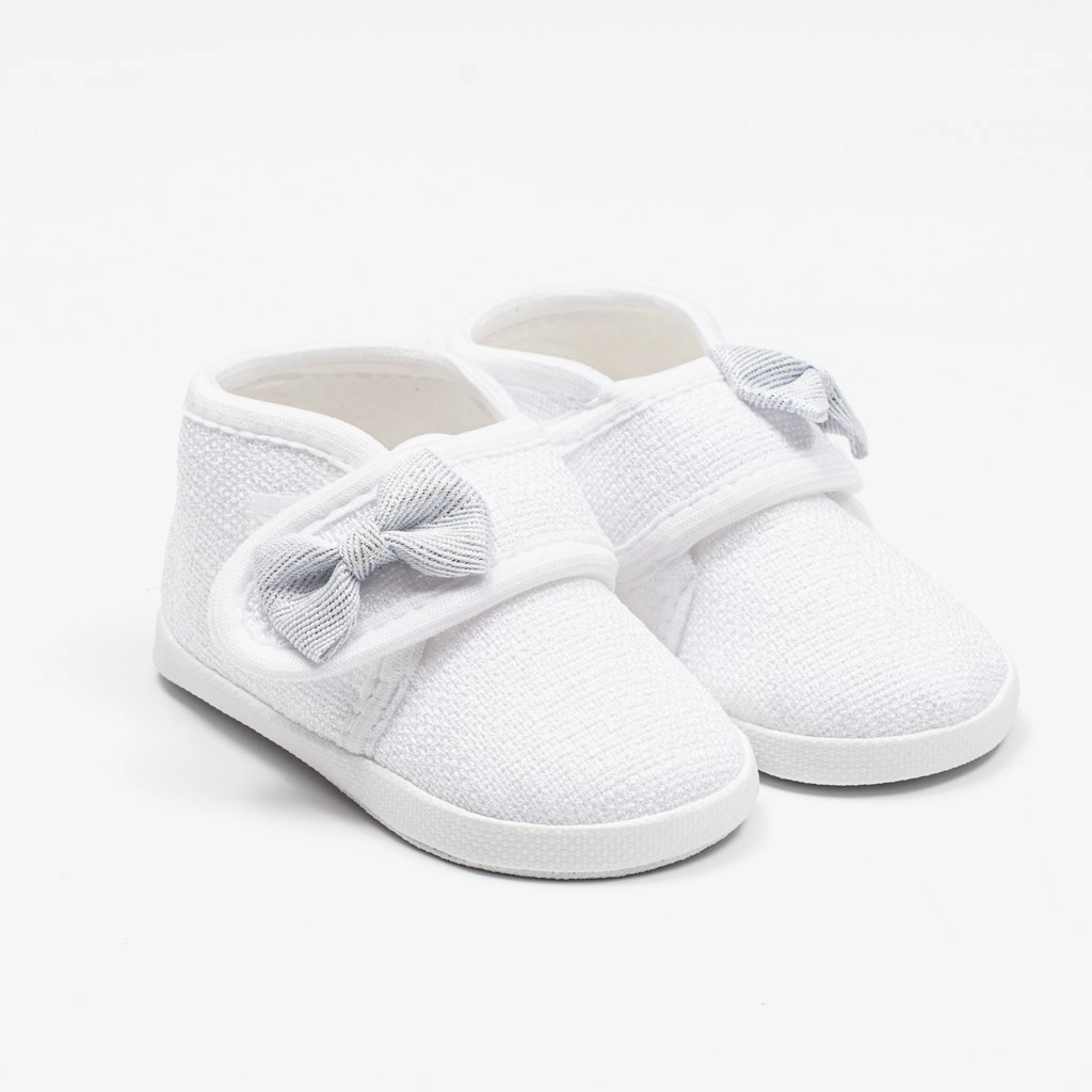 La tomaia in tessuto tipo lino (100% poliestere) è piacevole al tatto e di facile manutenzione. Ideali per l’uso quotidiano in casa e per le visite. Le scarpine non sono destinate alla camminata, ma completano l’outfit e mantengono i piedini del bebè al caldo.