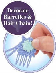 Spazzola, catenina decorativa per capelli, 4 cristalli, 4 mollette, 4 elastici e 2 ciocche per intrecciare: tutto ciò di cui i bambini hanno bisogno per creare pettinature originali.