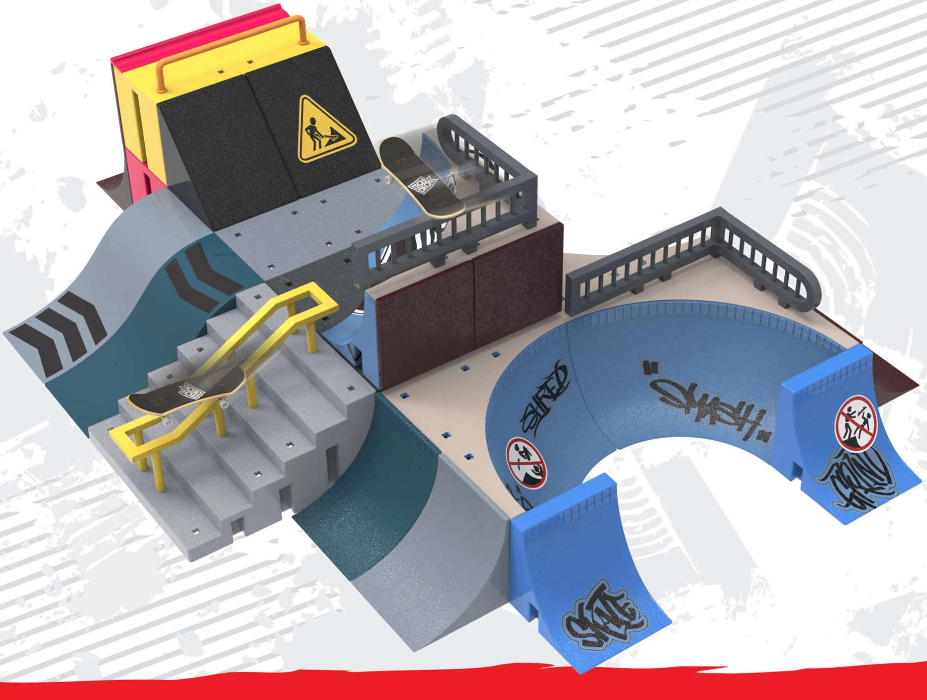Collega facilmente rampe, box e corrimani e costruisci uno skatepark originale esattamente come lo immagini.