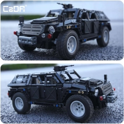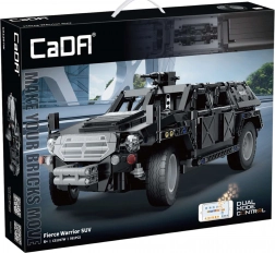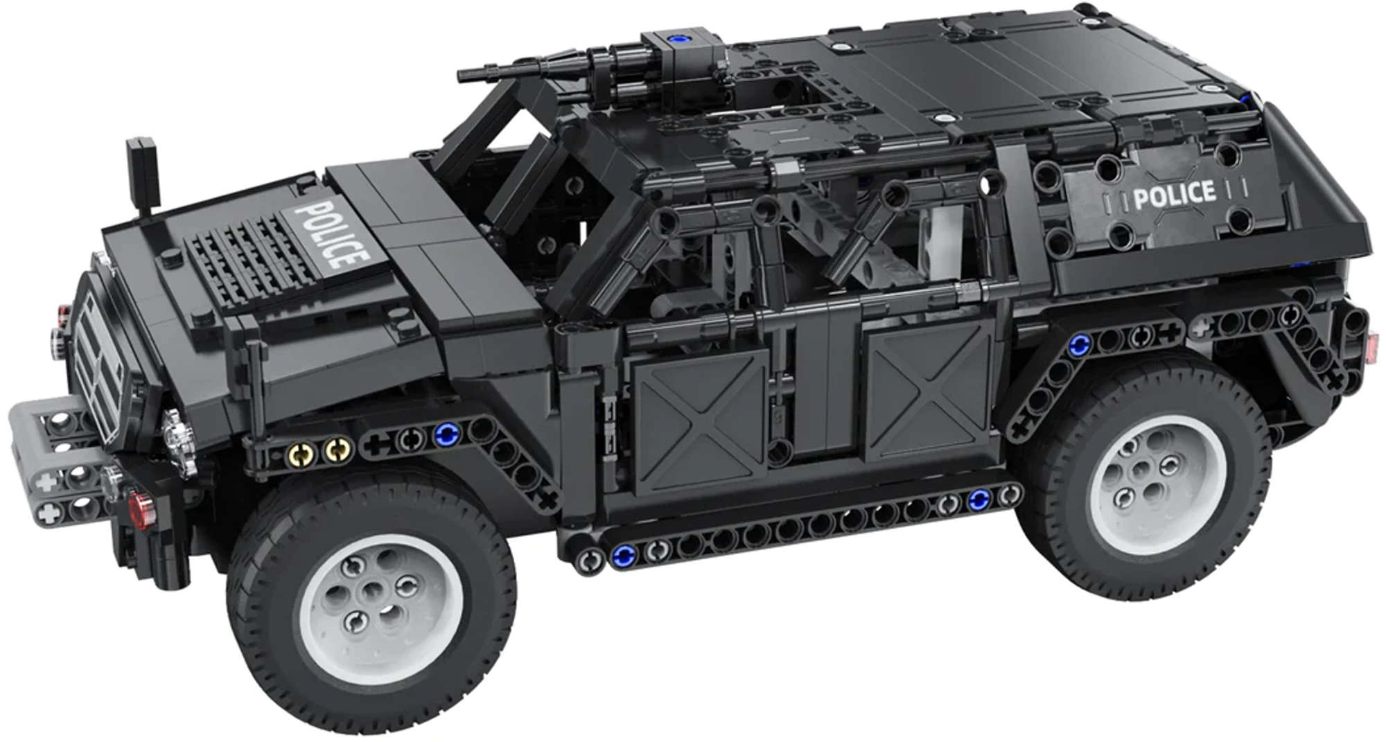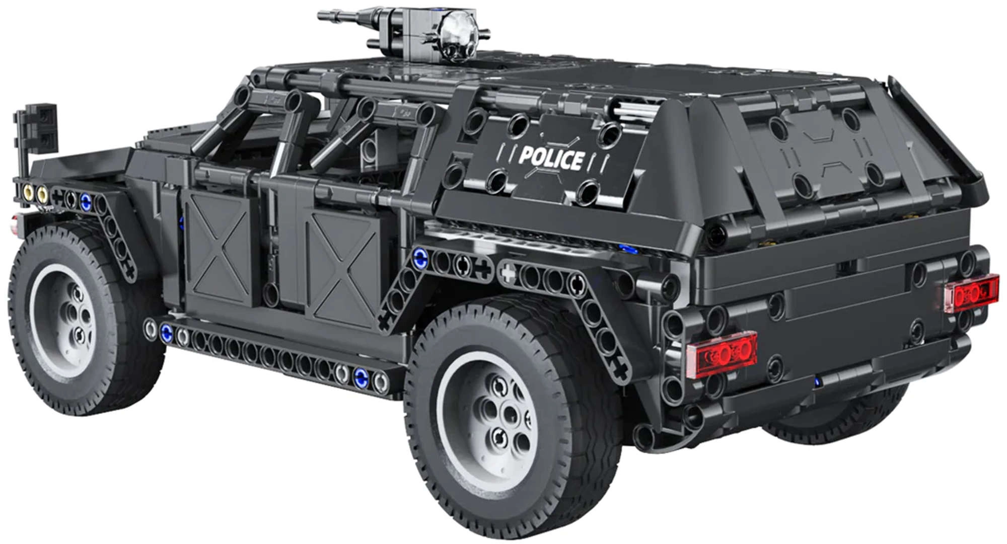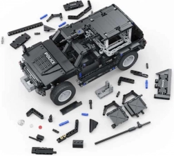 Il set della serie CADA Make Your Bricks Move è perfetto per chi ama le sfide tecniche e il gioco dinamico. Grazie alla struttura dettagliata, agli elementi funzionali e al controllo a distanza, ti godrai una guida realistica e un modello bello da esporre. La finitura nera con accenti grigi e le vistose scritte POLICE enfatizzano l’aspetto robusto del SUV.