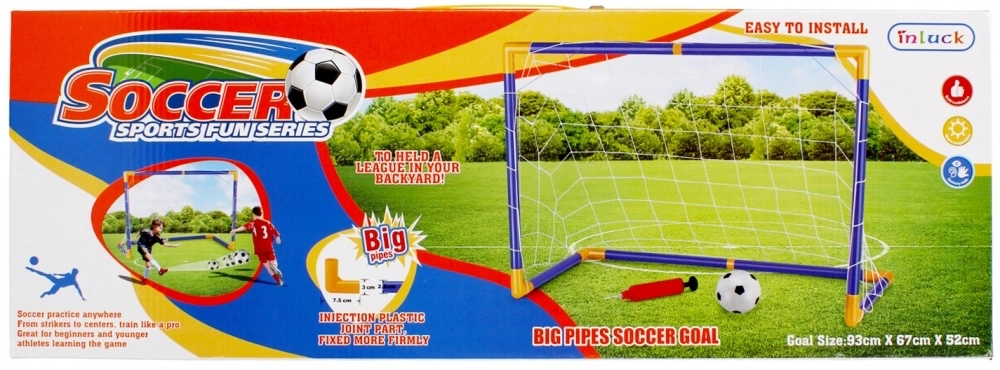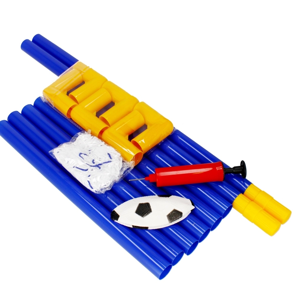 Nella confezione trovi porta, rete, pallone, pompetta manuale e picchetti: basta montare e puoi iniziare a giocare.