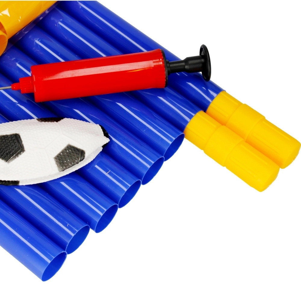 Il set viene fornito come confezione completa: porta con tubi di collegamento, rete, palloncino e pompetta manuale. I picchetti garantiscono la stabilità della porta sull’erba, mentre la rete resistente cattura in modo affidabile ogni gol. Perfetta per sviluppare coordinazione, movimento e gioco di squadra.
