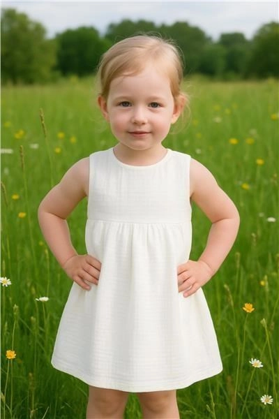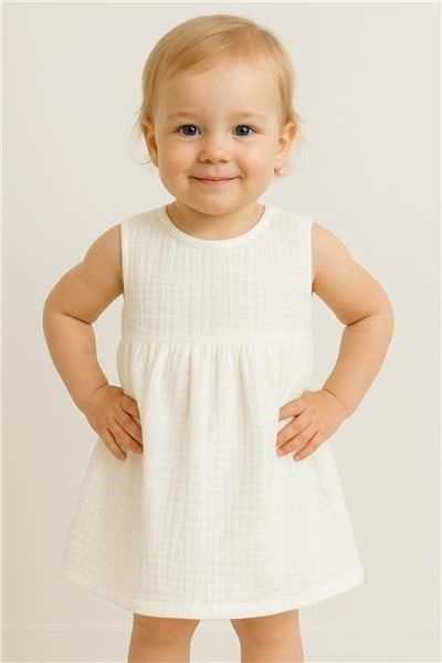 Scoprite il fascino del vestitino estivo in mussola New Baby Elizabeth, che si distingue per la sua leggerezza, traspirabilità e massimo comfort per il vostro bimbo. Il taglio senza maniche e la forma a A offrono libertà, mentre la gonnellina leggermente arricciata dona al vestito un aspetto elegante. Ideale per le giornate calde, le feste in famiglia e l’uso quotidiano.
