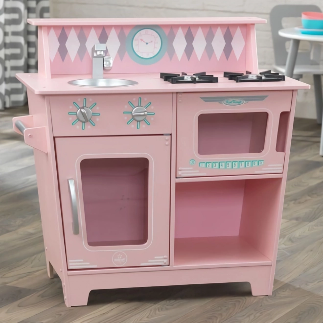La cucina per bambini KidKraft offre molte funzioni che stimolano l'immaginazione dei bambini. È dotata di lavello, fornello multifunzionale e forno a microonde. I fornelli dettagliati e le manopole girevoli che emettono suoni di clic contribuiscono a un'esperienza di gioco realistica.