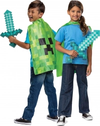 Costume Minecraft con spada di diamante e mantello Creeper per bambini