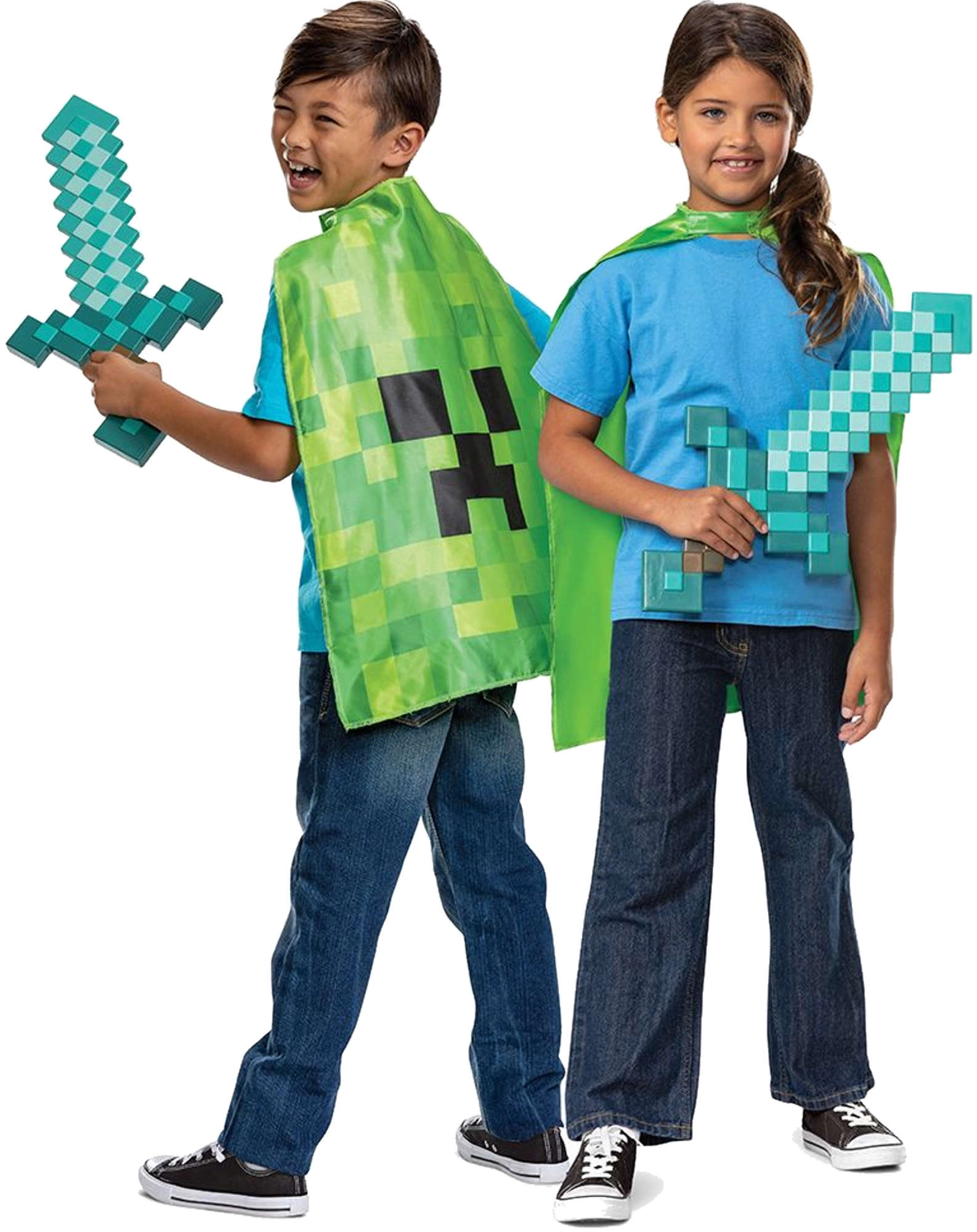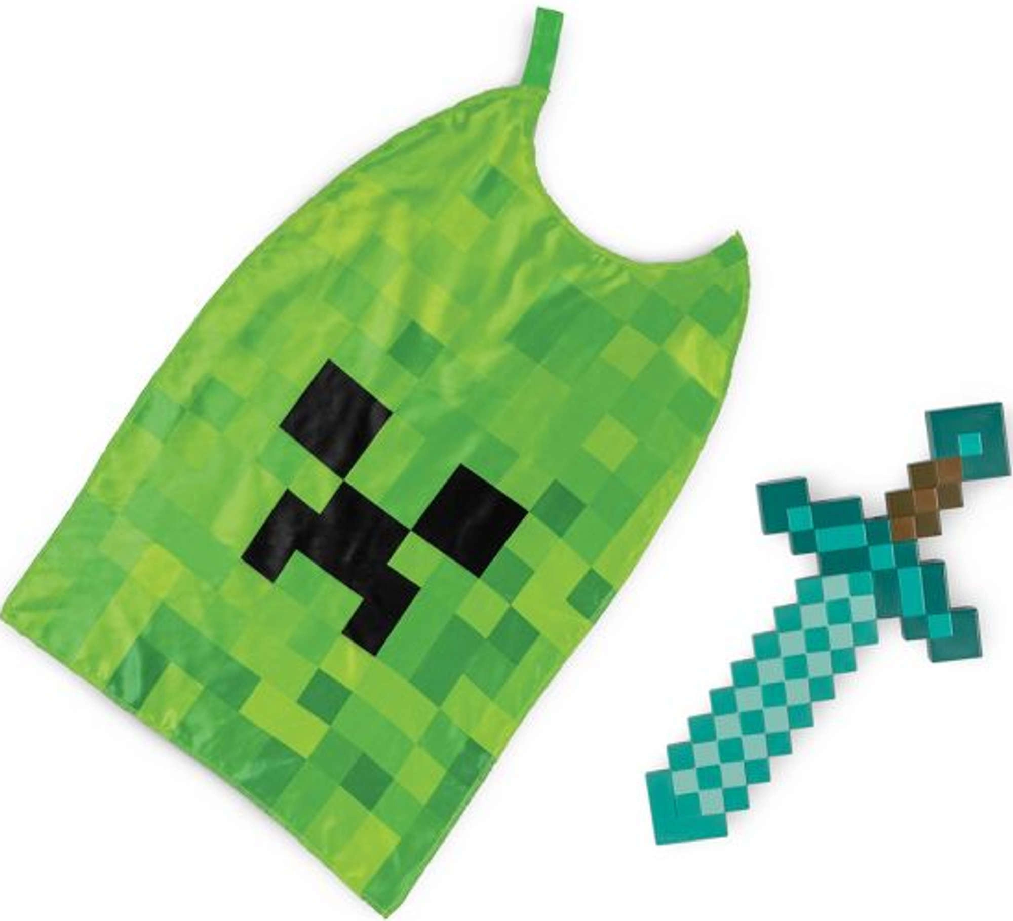 Entra nel mondo di Minecraft con l’originale set del brand Disguise: spada di diamante in plastica con impugnatura ergonomica e mantello con volto Creeper. I bambini ameranno subito l’autentico look “pixel” e la facilità di utilizzo del mantello.