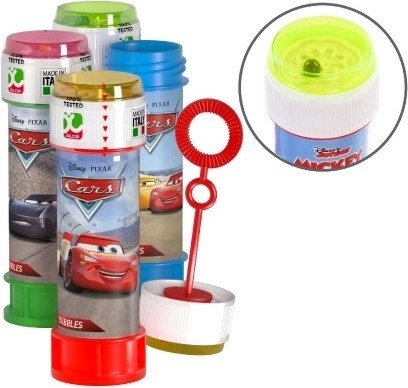 Bolle di sapone con tema Cars dal volume di 60 ml offre tanto divertimento grazie al coperchio colorato, nel quale è nascosto un gioco divertente. Soffiatore è parte integrante del coperchio.
