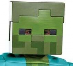 Le spalle squadrate e la maschera a blocchi trasformano il bambino nel leggendario zombie di Minecraft in un attimo.