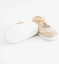 Le scarpine sono molto leggere, con una suola sottile sintetica, delicata sui piedini sensibili. La lunghezza della soletta interna è di 13 cm, ideale per bambini di 12–18 mesi. La confezione include una pratica scatolina, perfetta anche come regalo.