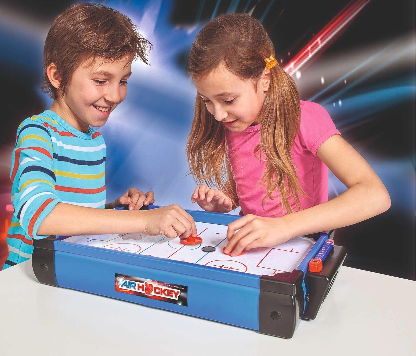 Goditi il classico air hockey in una mini versione portatile che riprende fedelmente le regole dell’hockey ad aria tradizionale. Porte e dischi più piccoli rendono la partita dinamica e coinvolgente, mentre i contatori manuali sopra le porte consentono di seguire rapidamente il punteggio. Ideale per brevi tornei con amici e famiglia.