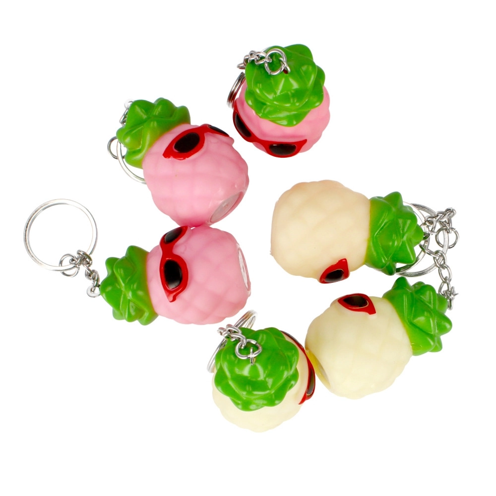 Il simpatico ananas con occhiali dona personalità alle tue chiavi e, grazie alla luce rossa, ti aiuta a trovarle più facilmente anche al buio. Il portachiavi è leggero, compatto e perfetto per chiavi, zaino e portafoglio.