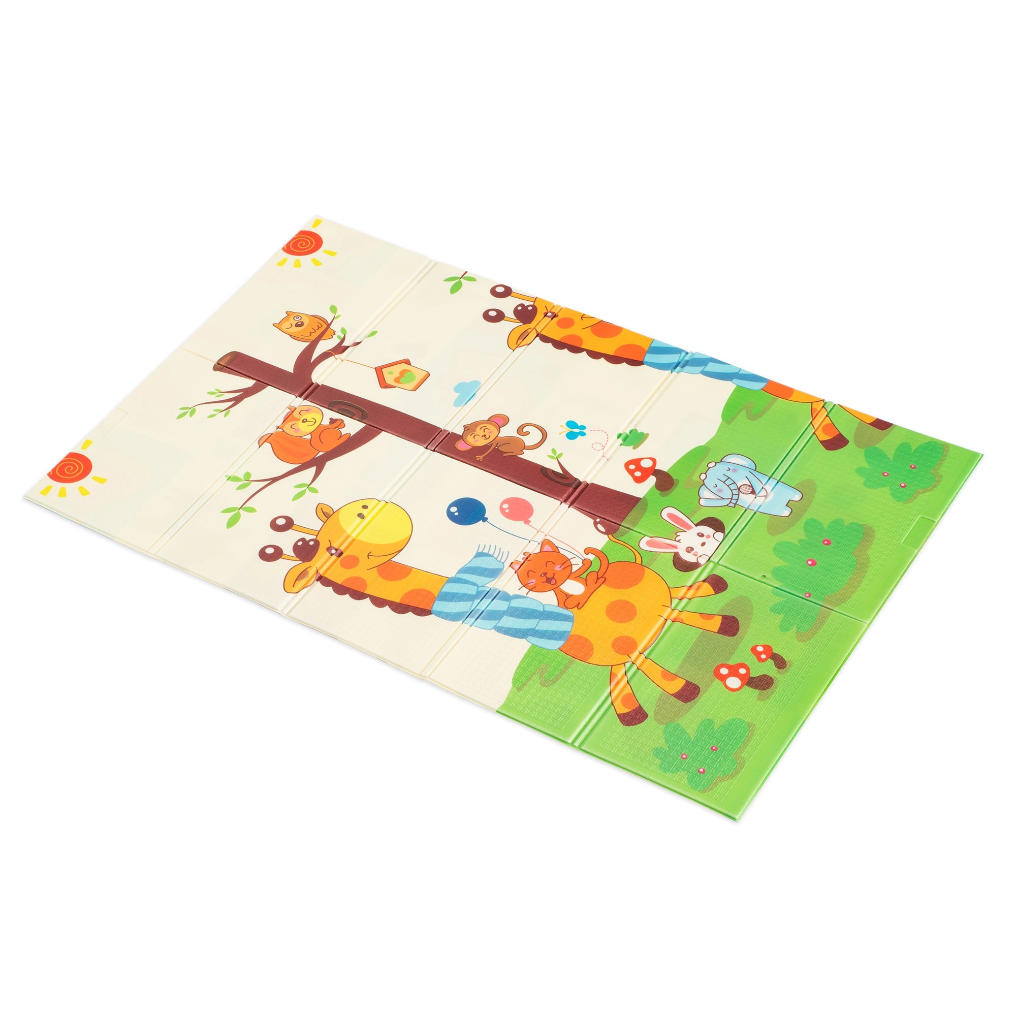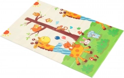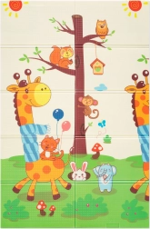 La schiuma XPE premium è inodore, atossica e resistente all’usura. Grazie allo spessore di 0,8 cm assorbe ottimamente gli urti e garantisce isolamento dal pavimento freddo. Entrambi i lati sono decorati con stampe accattivanti: uno con tenere giraffe, l’altro con animaletti su sfondo colorato, che stimolano lo sviluppo visivo dei bambini.