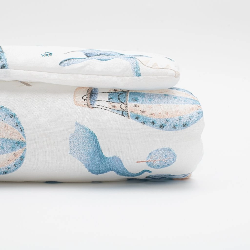 Il bellissimo set in cotone per passeggino New Baby Romance conquista con il suo design delicato e il comfort per il bebè. Include un cuscinetto e una copertina con stampa di un’avventura fiabesca tra le nuvole. L’imbottitura è anallergica, la fodera è in 100% cotone – delicata sulla pelle del bambino, calda e piacevole al tatto.