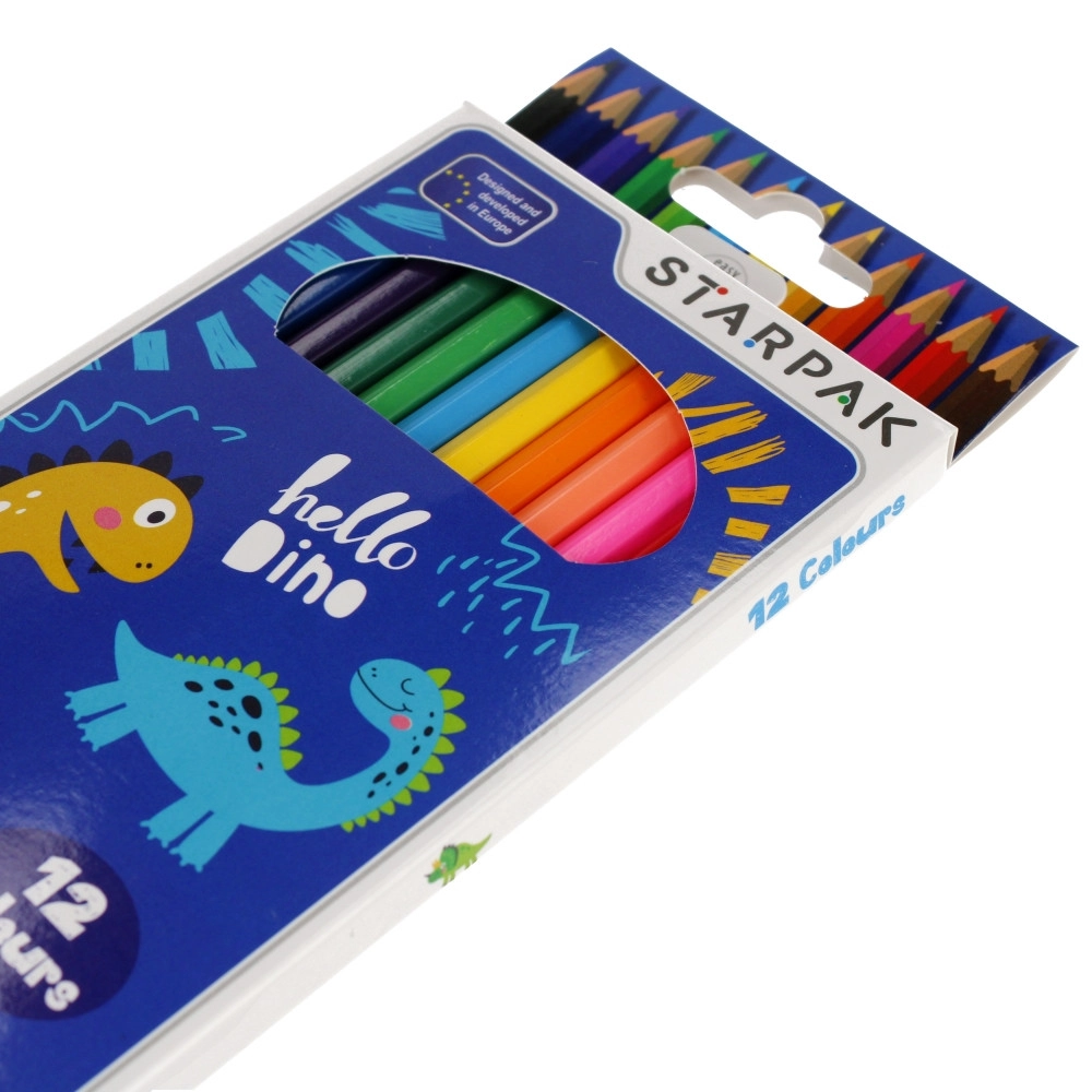 Questo set include 12 pastelli colorati di qualità con il popolare motivo dei dinosauri. Ogni pastello è lungo 18 cm e, grazie alla forma esagonale, si impugna bene, non scivola dalla mano e rotola meno dal tavolo. La mina affilata garantisce linee precise e una colorazione vivace.
