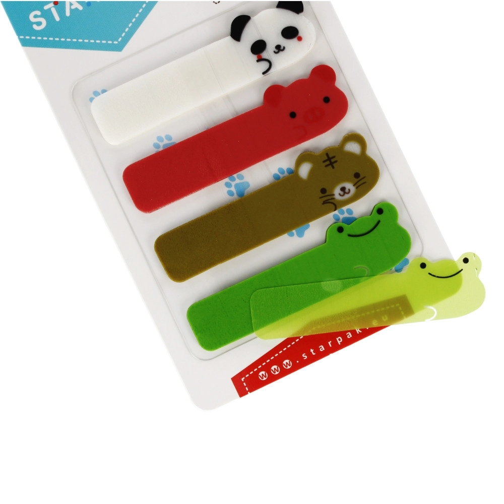 Adorabili segnalibri adesivi con motivi di animali per rendere più ordinati quaderni e libri. Ogni blocco contiene 20 foglietti in quattro colori e motivi. Perfetti per alunni e studenti, ma anche per l’ufficio. Facili da riposizionare, codificati a colori e immediatamente visibili per un’orientamento rapido.