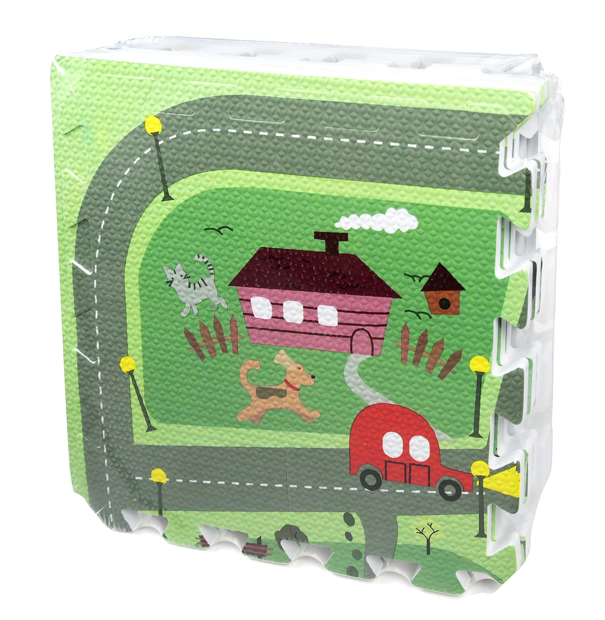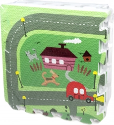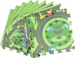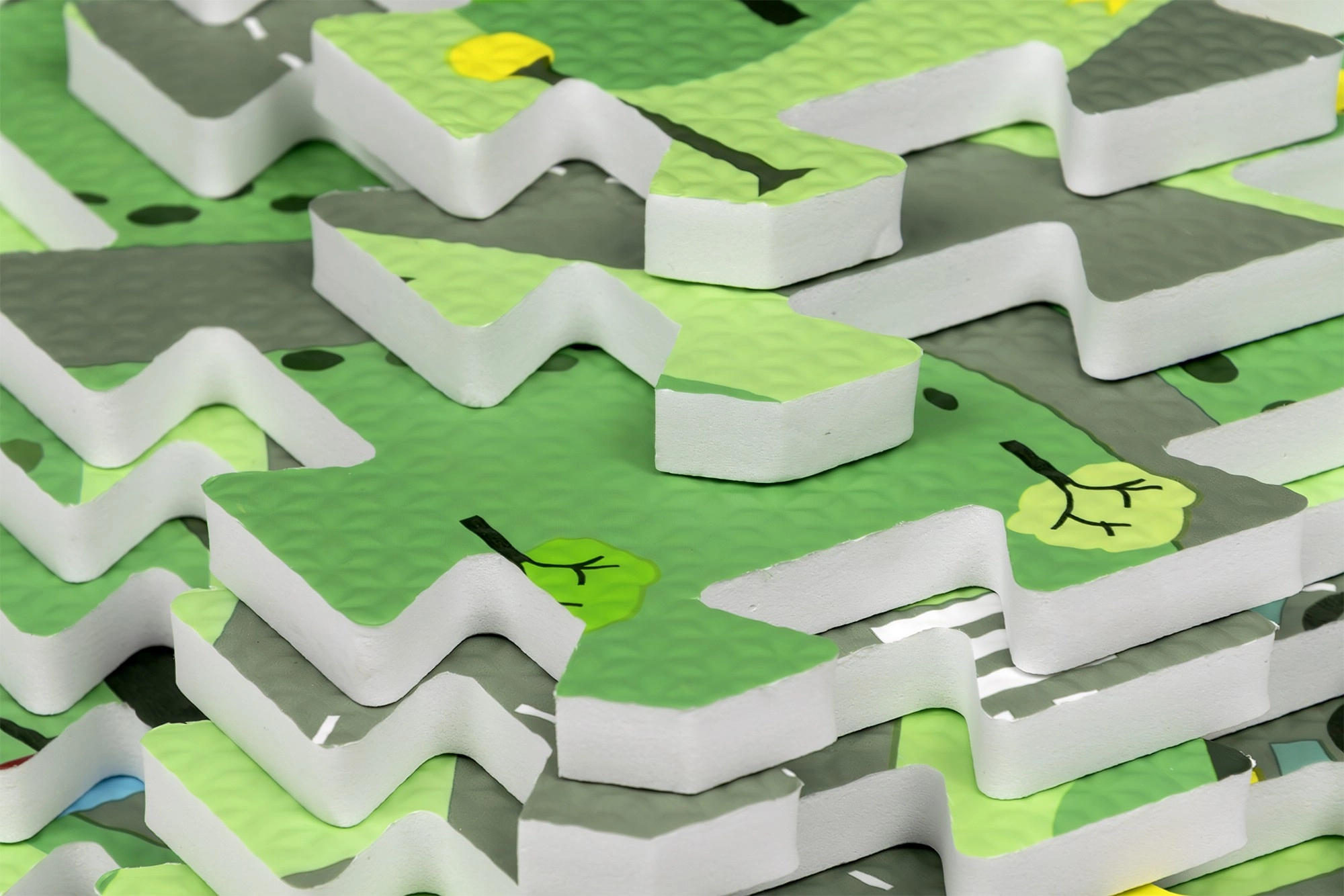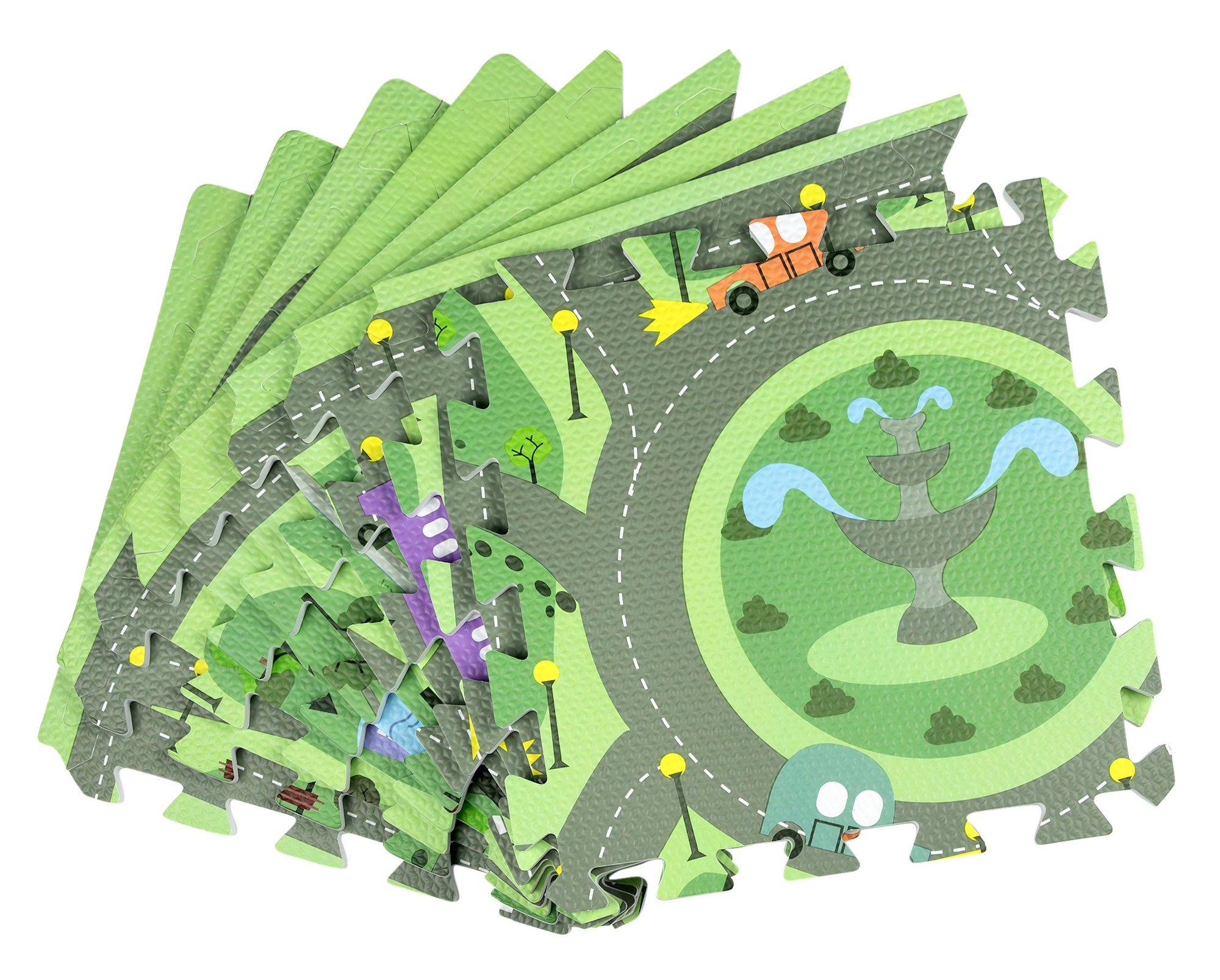 Create per il vostro bambino un luogo di gioco confortevole e igienico. Il tappetino in schiuma EVA elastica è privo di ftalati, formammide, PVC e BPA, ha una superficie antiscivolo e delicati rilievi per passi iniziali più sicuri. Il motivo pastello delle strade cittadine con rotonda, parchi, laghetto ed edifici stimola la fantasia e invita alle corse con le macchinine e al gioco creativo con le figurine.