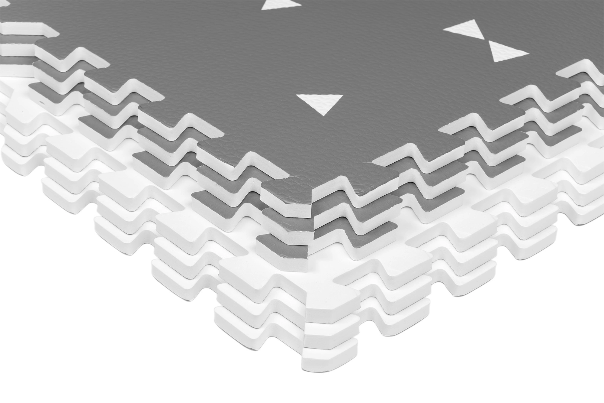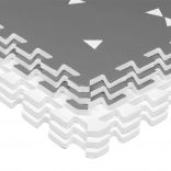 Il tappetino in schiuma HUMBI crea per neonati e bimbi piccoli un luogo sicuro per giocare, gattonare e muovere i primi passi. Grazie allo spessore di 1 cm isola dal freddo e assorbe gli impatti su superfici dure come piastrelle, parquet o laminato. Il design grigio discreto con triangoli si adatta agli interni moderni.