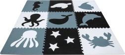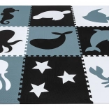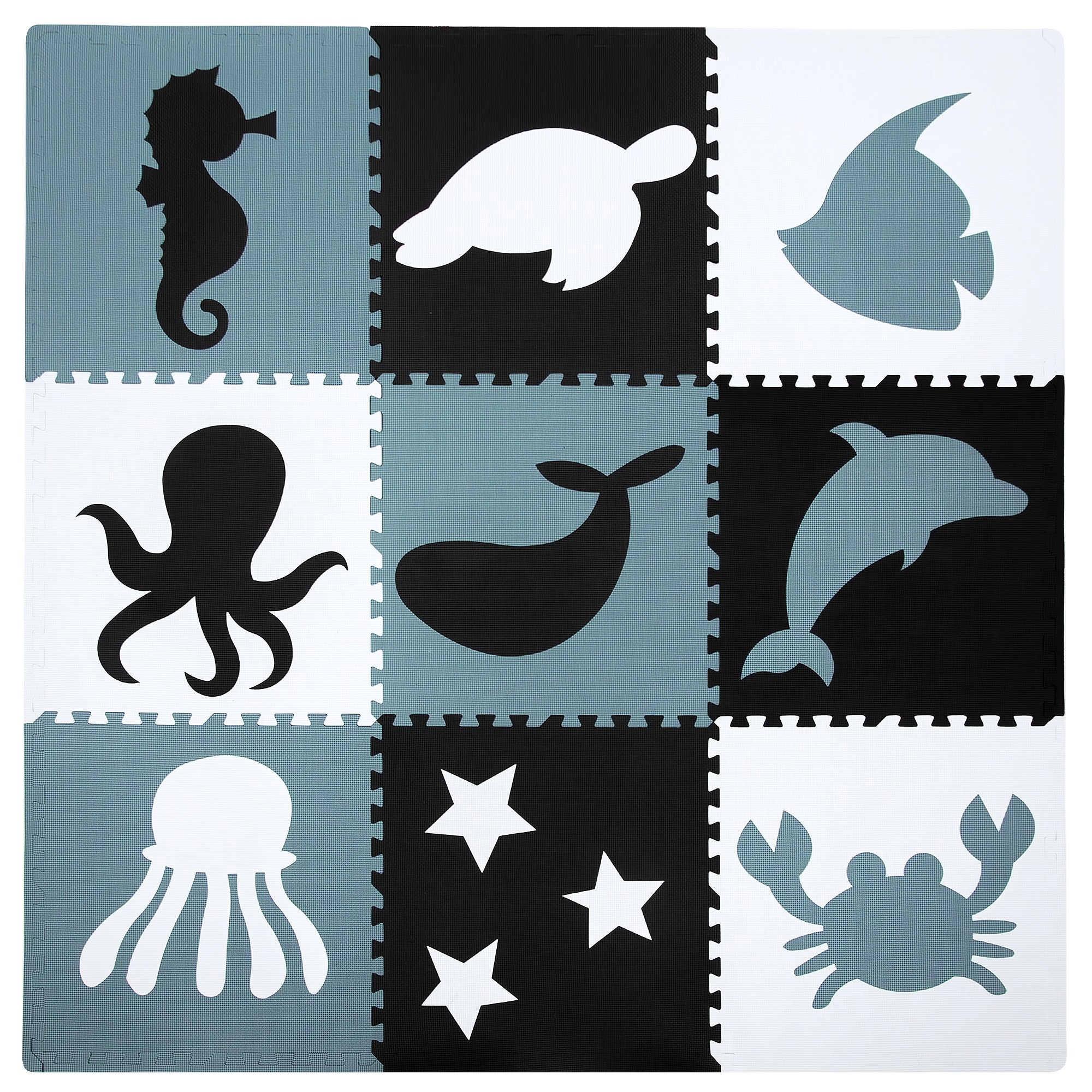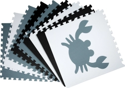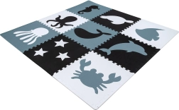 Il tappetino in schiuma EVA elastica è privo di ftalati, formamide, BPA e PVC, conforme alle norme EN 71 e REACH e contrassegnato CE. Grazie allo spessore di 1 cm, isola ottimamente dal freddo e ammortizza le cadute, risultando ideale per parquet, piastrelle e laminato. La superficie è impermeabile e facile da pulire, non trattiene polvere né acari: basta passare un panno umido.